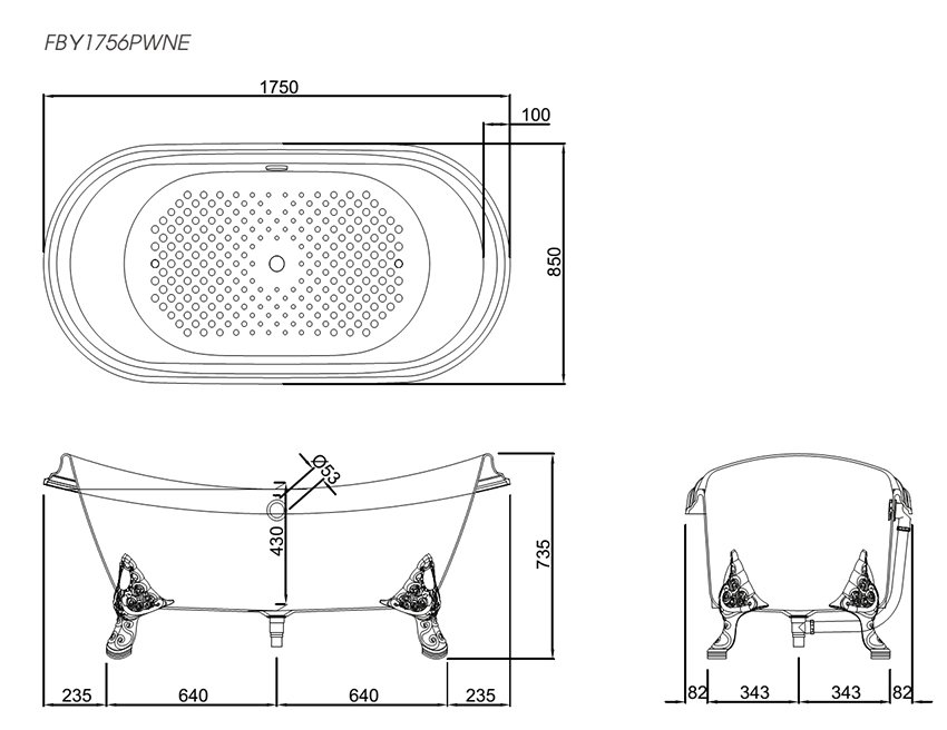 Thông số kĩ thuật Bồn tắm TOTO FBY1756PTNE#W lập thể gang tráng men 1.7M
