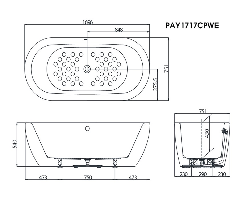 Thông số kĩ thuật Bồn Tắm TOTO PAY1717CPTE lập thể 1.7M