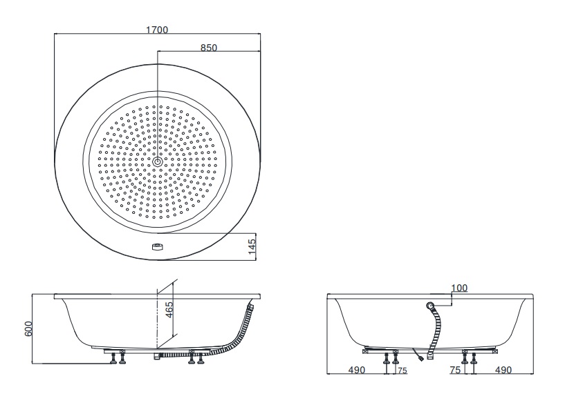 • Kích thước(rộng x dài x cao): 1700x1700x600mm