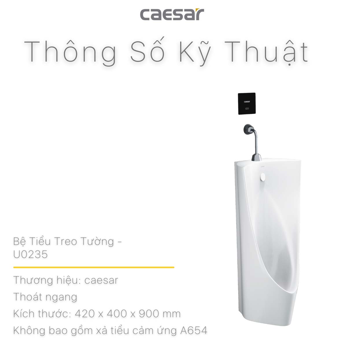 Thông số kĩ thuật Bồn tiểu nam CAESAR U0235 treo tường