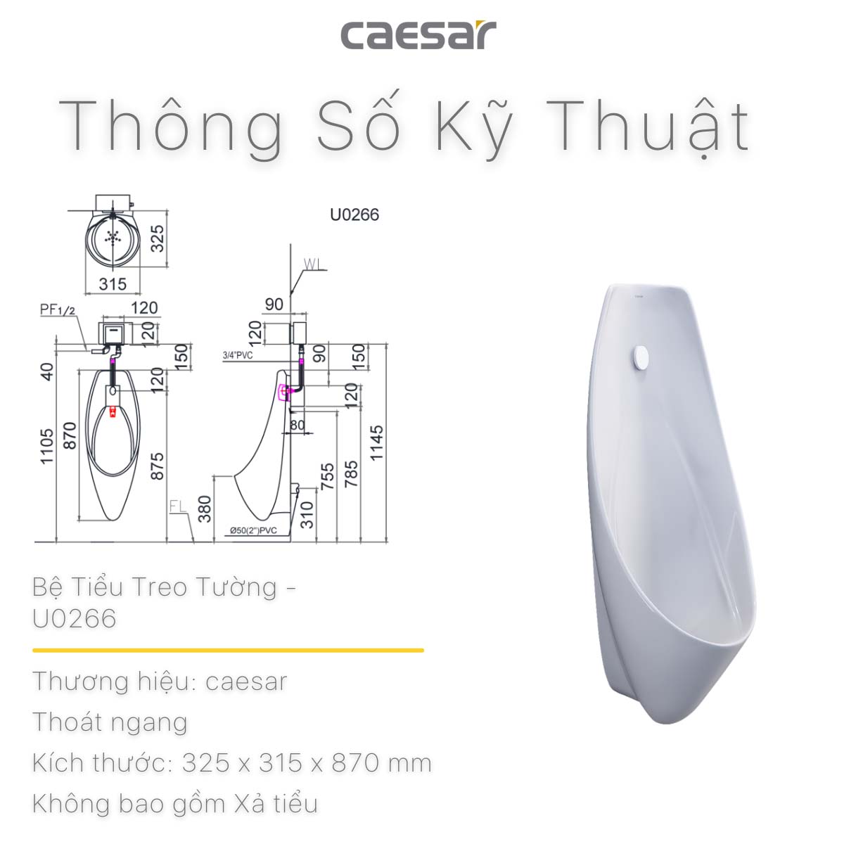 Thông số và tính năng Bồn tiểu nam CAESAR U0266 treo tường