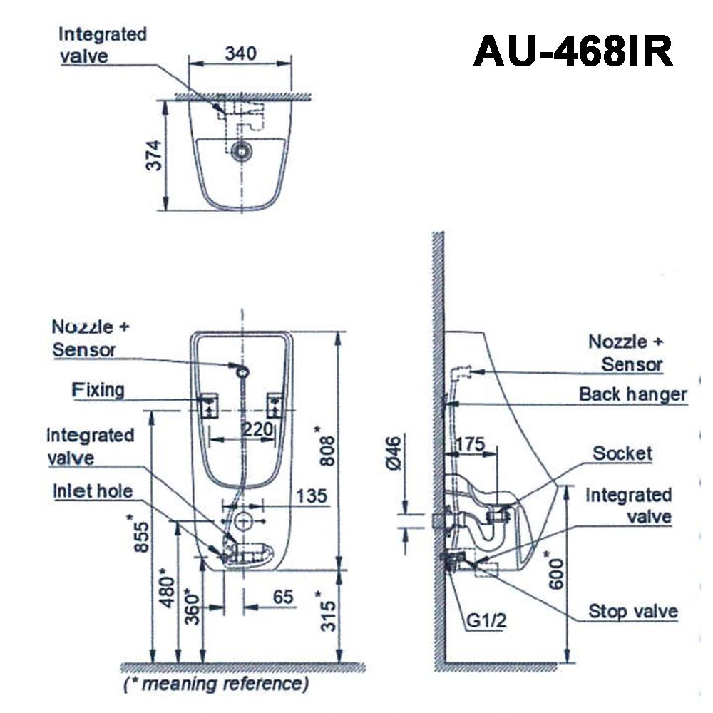 Bản vẽ kĩ thuật Bồn tiểu nam INAX AU-468IR cảm ứng pin treo tường