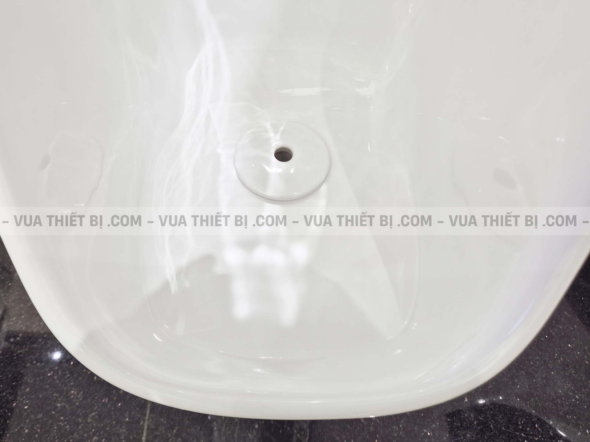 - AQUA CERAMIC: Lòng bồn tiểu được tráng men AQUA CERAMIC, đây là một công nghệ men siêu ưa nước chống bám bẩn. Điều này giúp bồn tiểu dễ dàng chùi rửa và giữ cho men sáng bóng trong thời gian dài lên tới 100 năm.