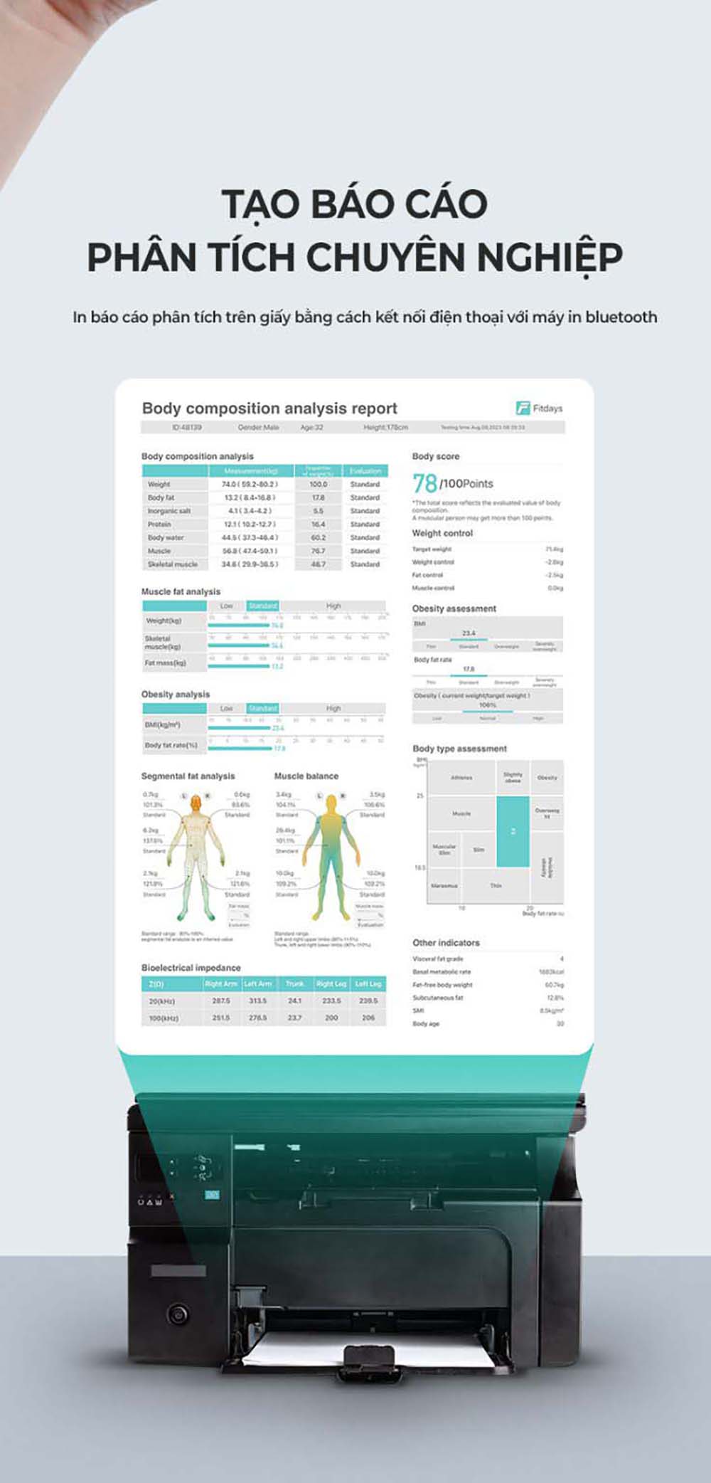 - Không chỉ dừng lại ở đó, nó còn cho phép tạo báo cáo phân tích body chuyên nghiệp để bạn có cái nhìn chi tiết về sự phát triển của cơ thể.