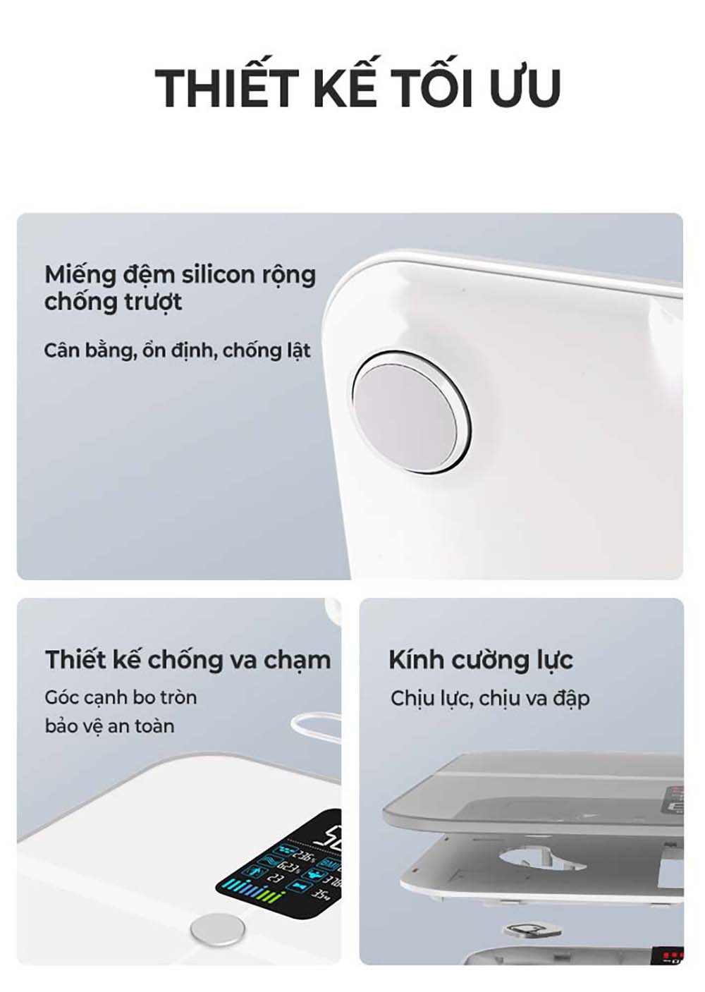 - Thiết kế cân được tối ưu hóa để tránh lật và trượt, mang lại sự an toàn khi sử dụng.