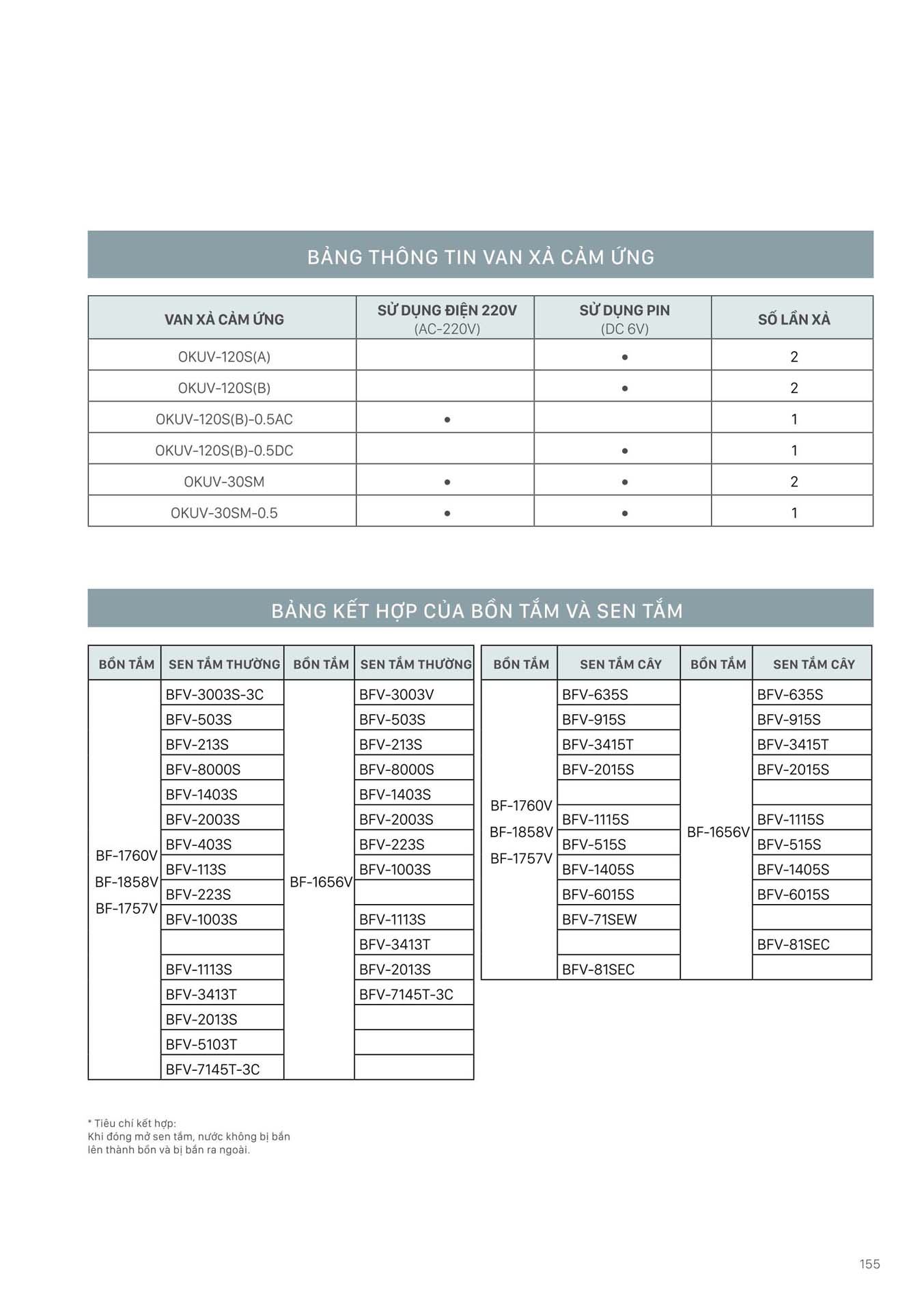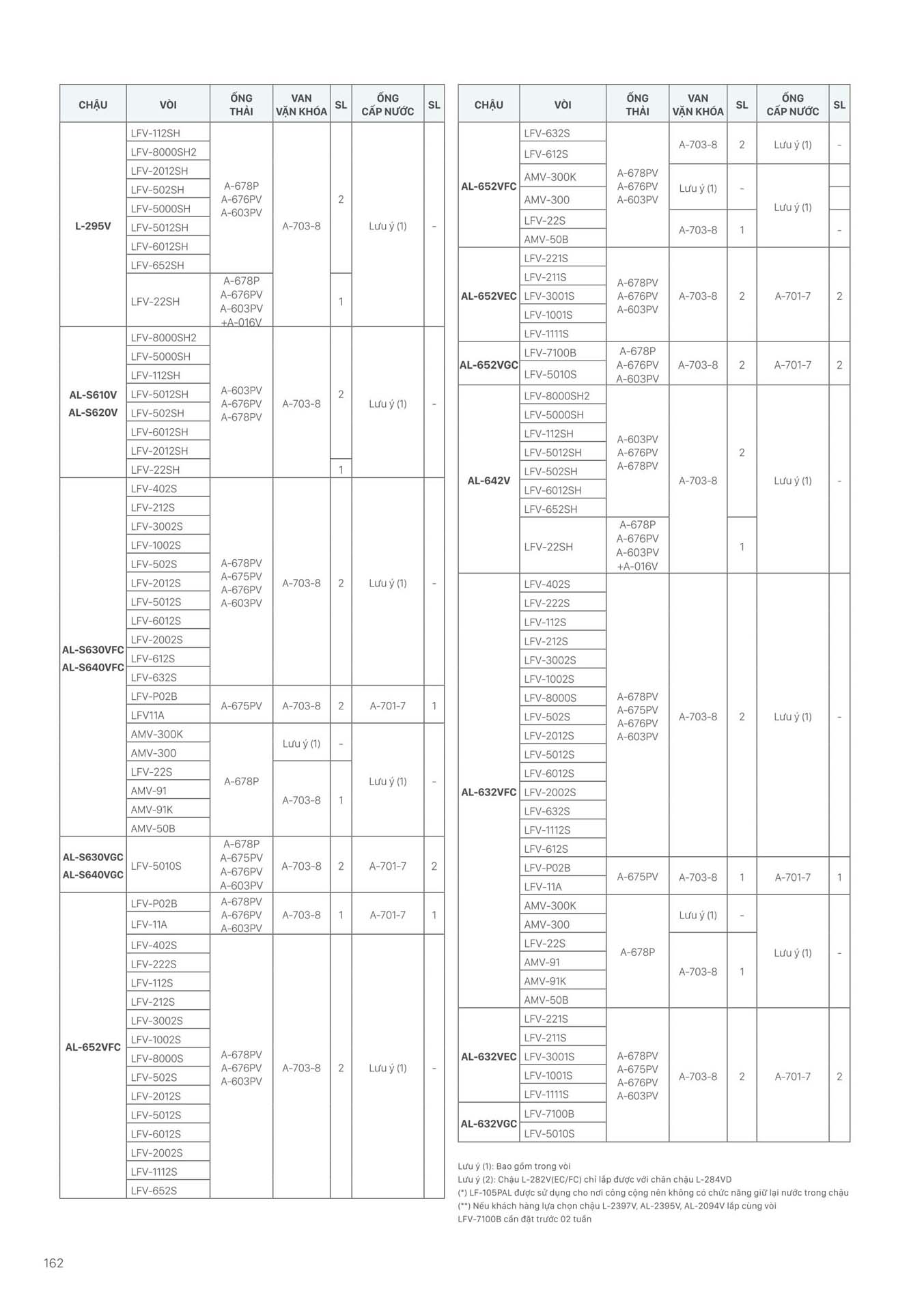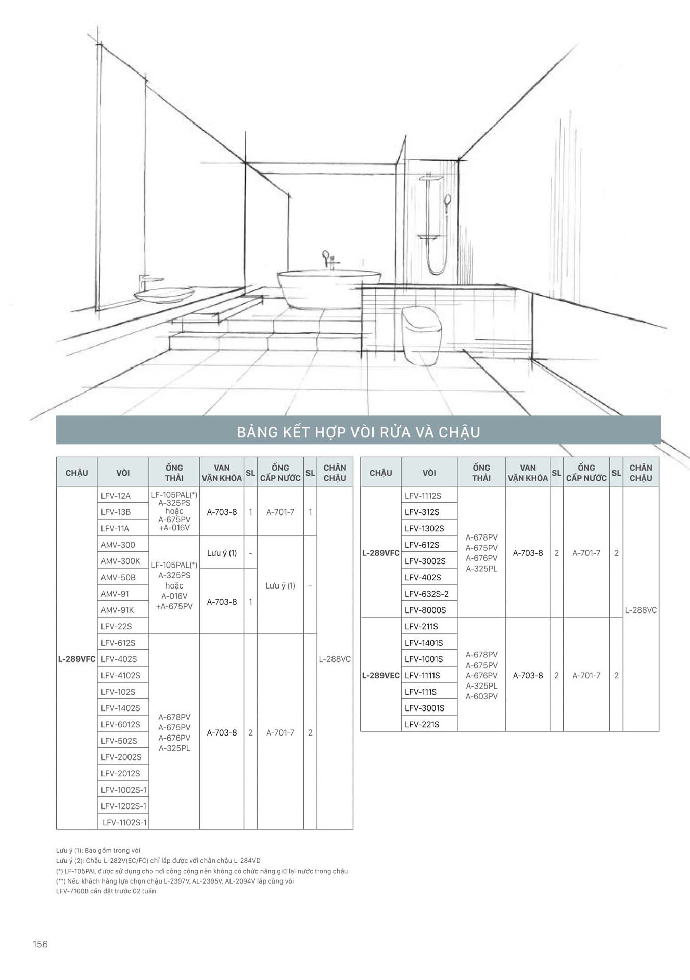 Phần 16: Bảng kết hợp các sản phẩm Thiết bị vệ sinh INAX