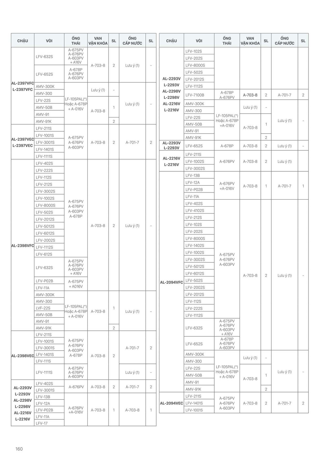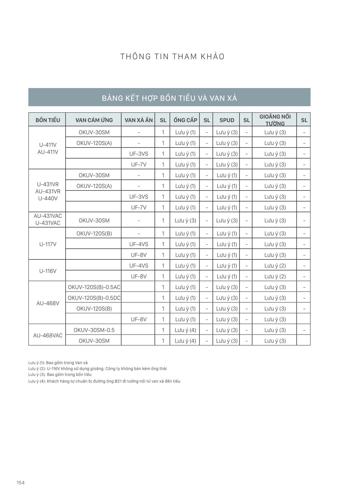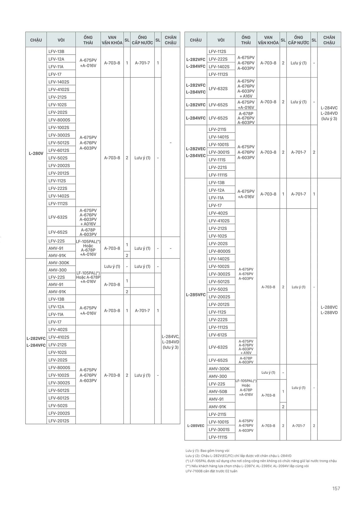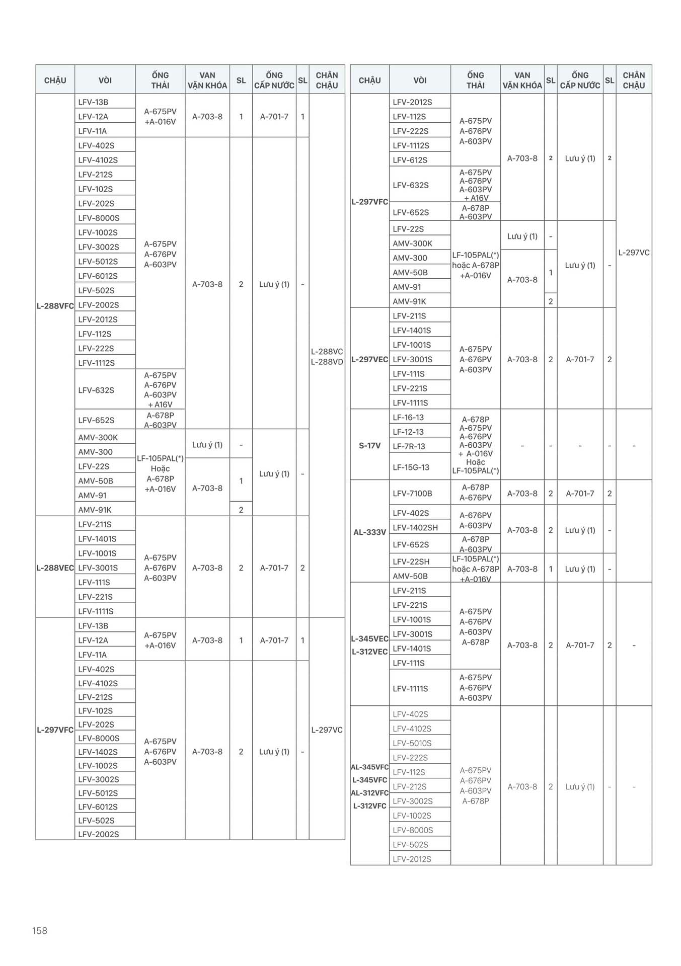 Phần 16: Bảng kết hợp các sản phẩm Thiết bị vệ sinh INAX