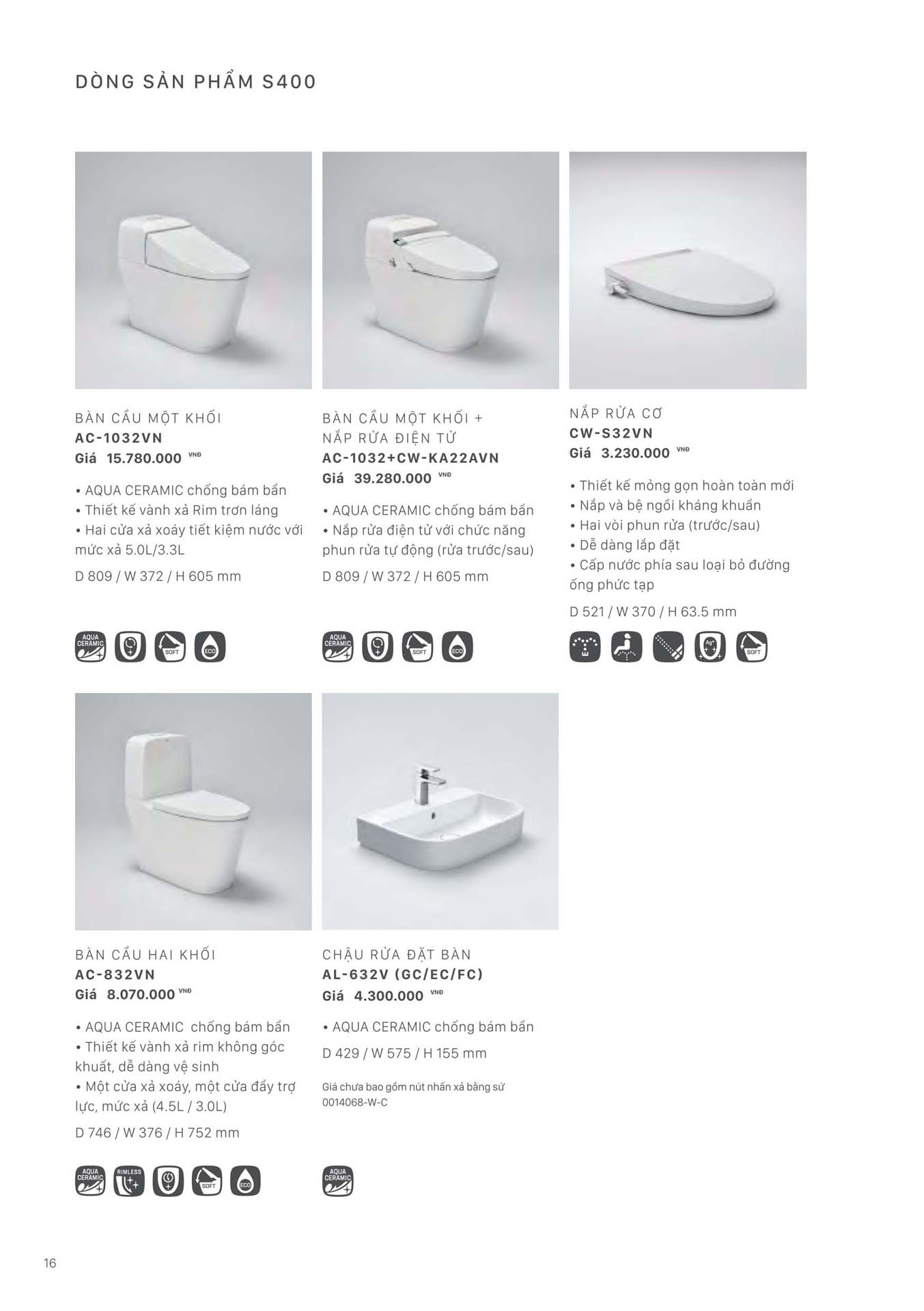 Phần 3: Catalogue Dòng sản phẩm S400 INAX
