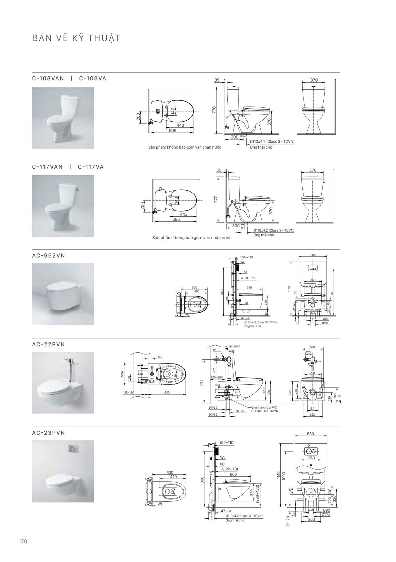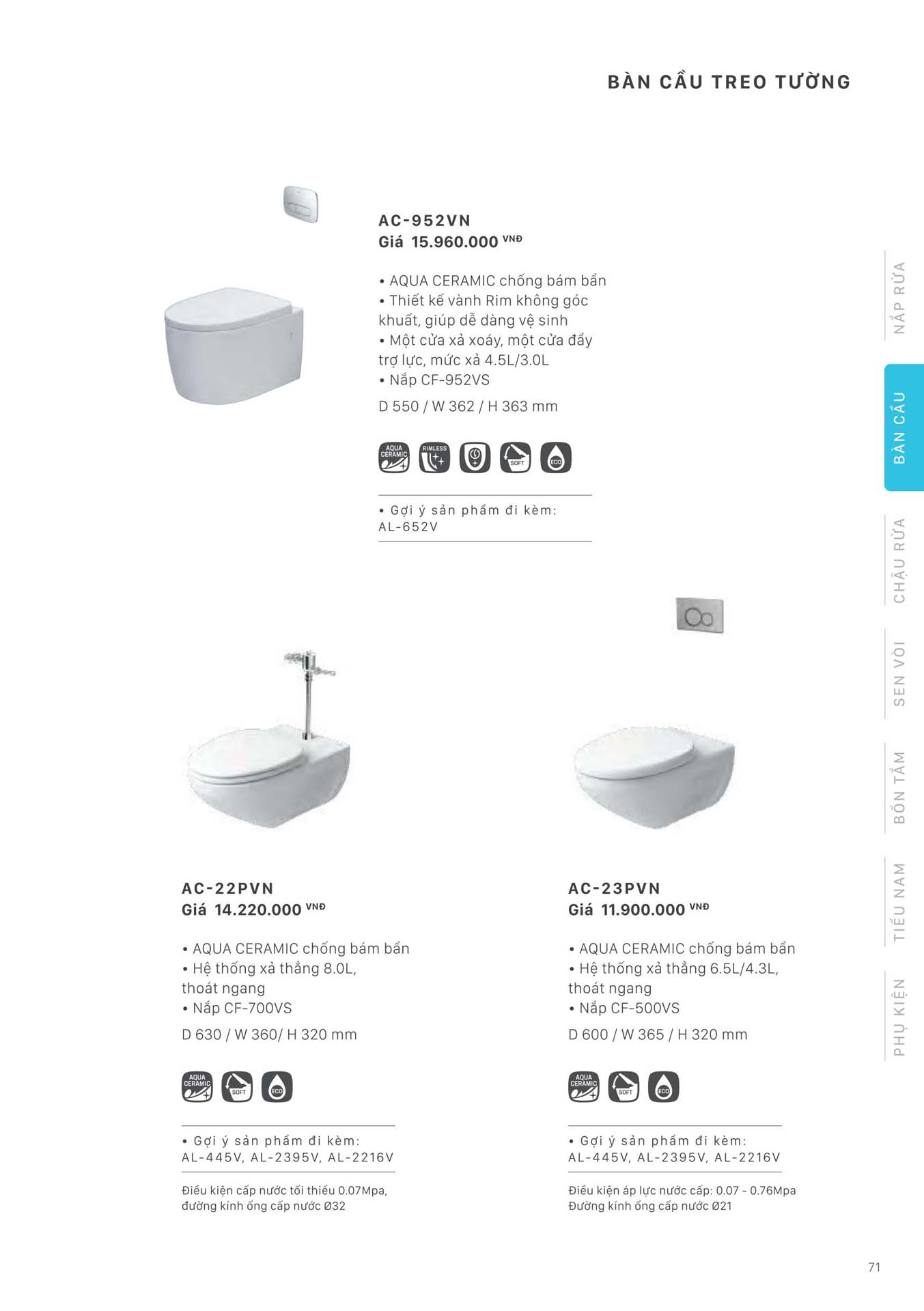Phần 8: Catalogue Bồn cầu treo tường INAX