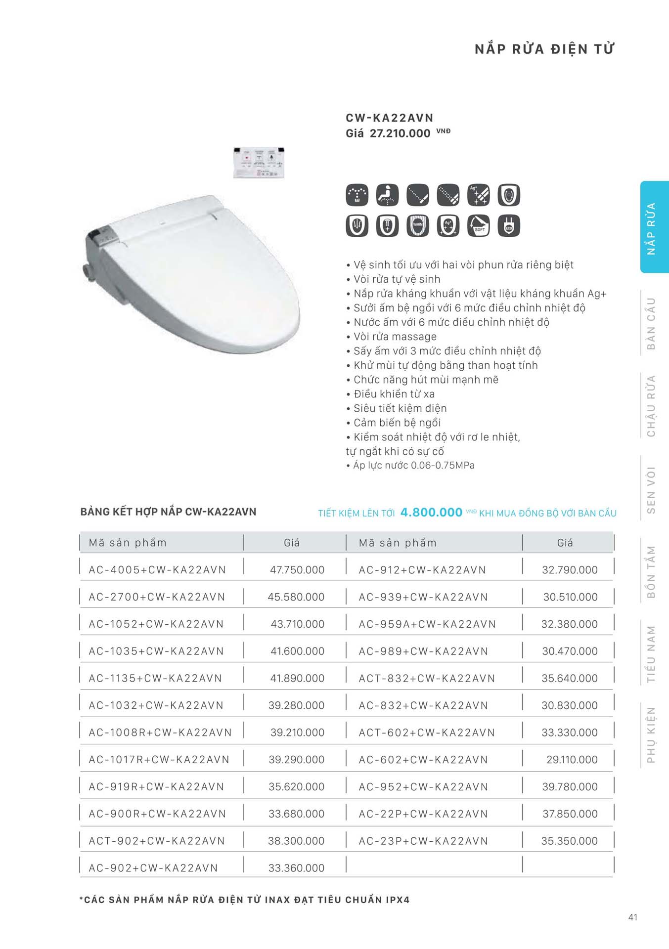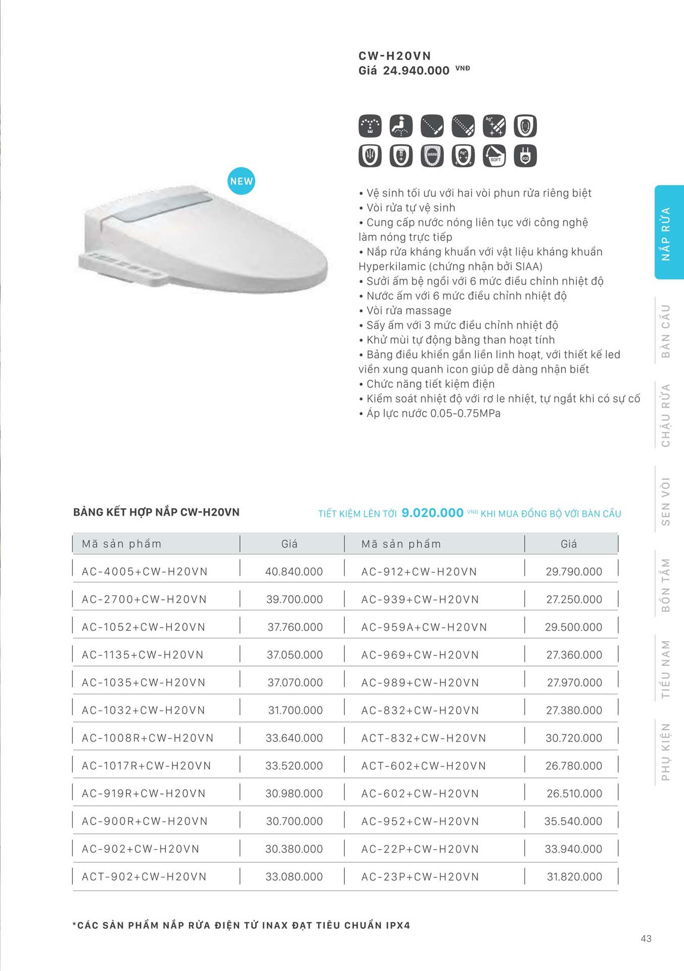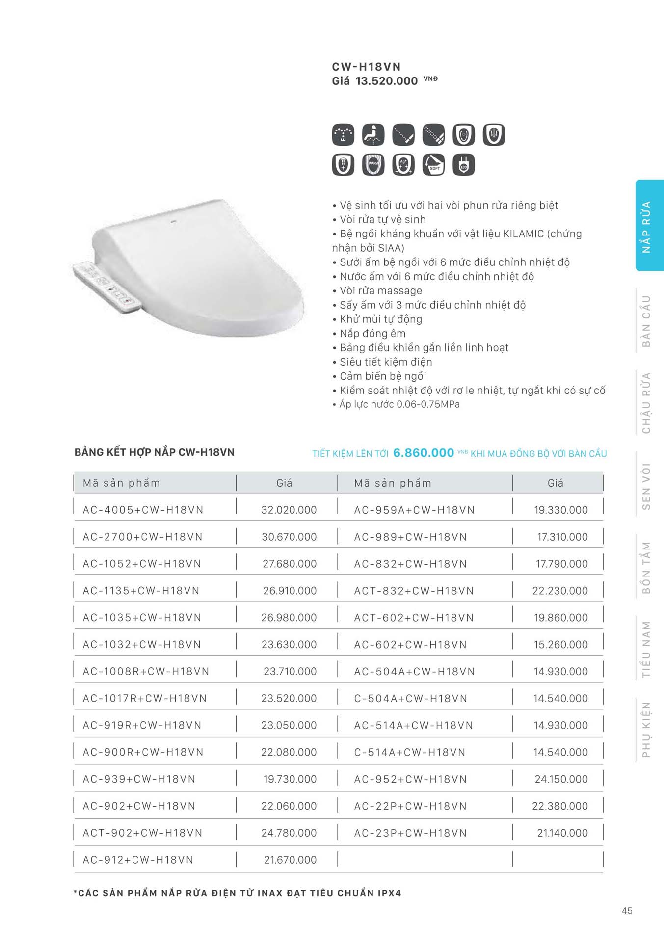 Phần 5: Catalogue Bồn cầu thông minh INAX, nắp bồn cầu thông minh INAX