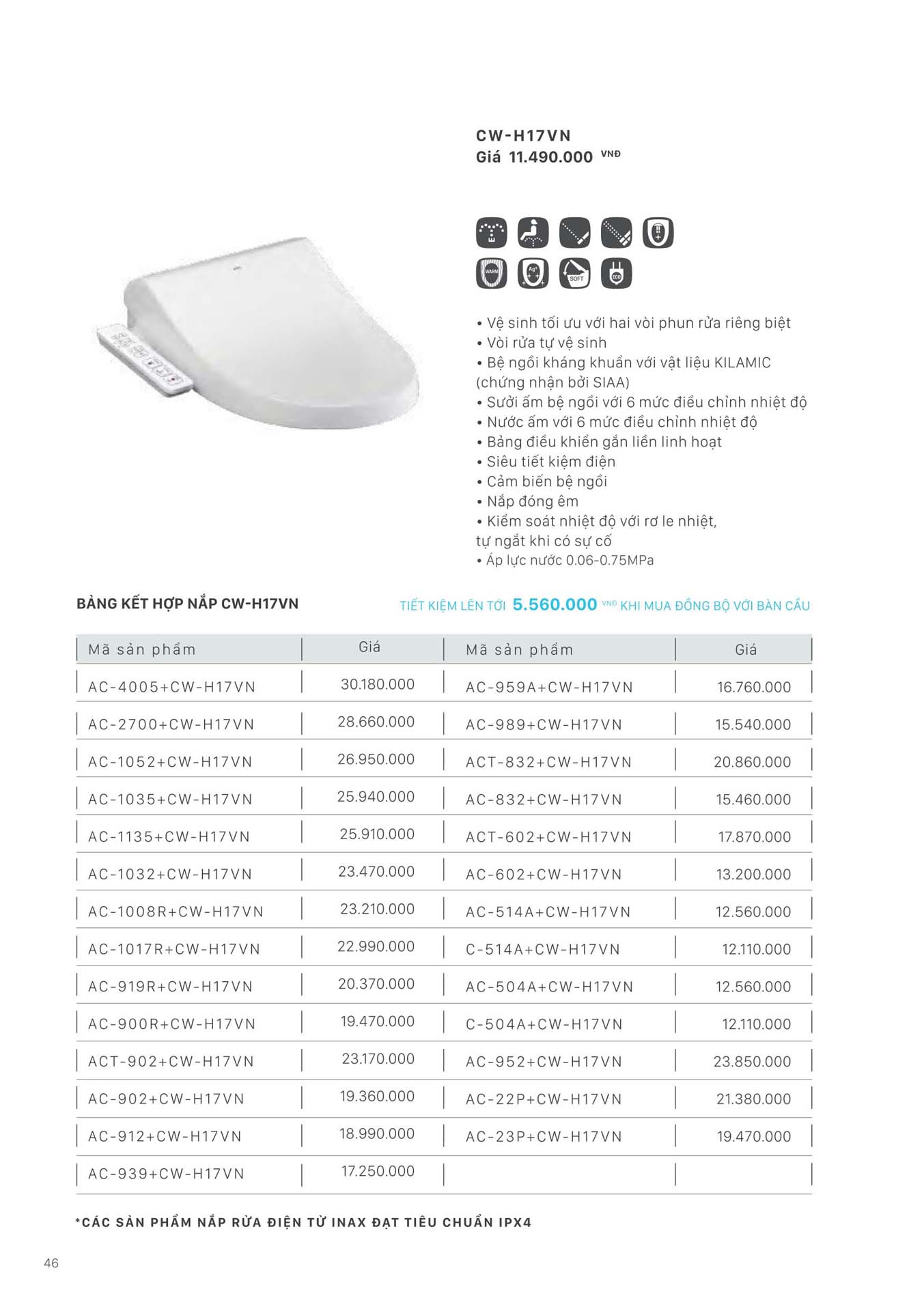 Xem thêm: Bảng giá Thiết bị vệ sinh INAX