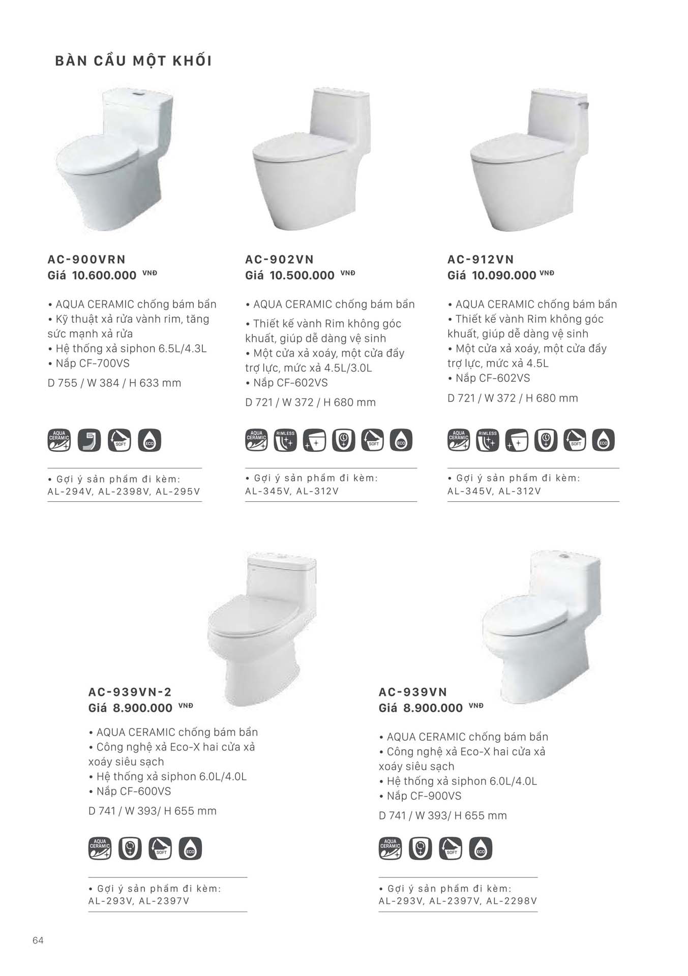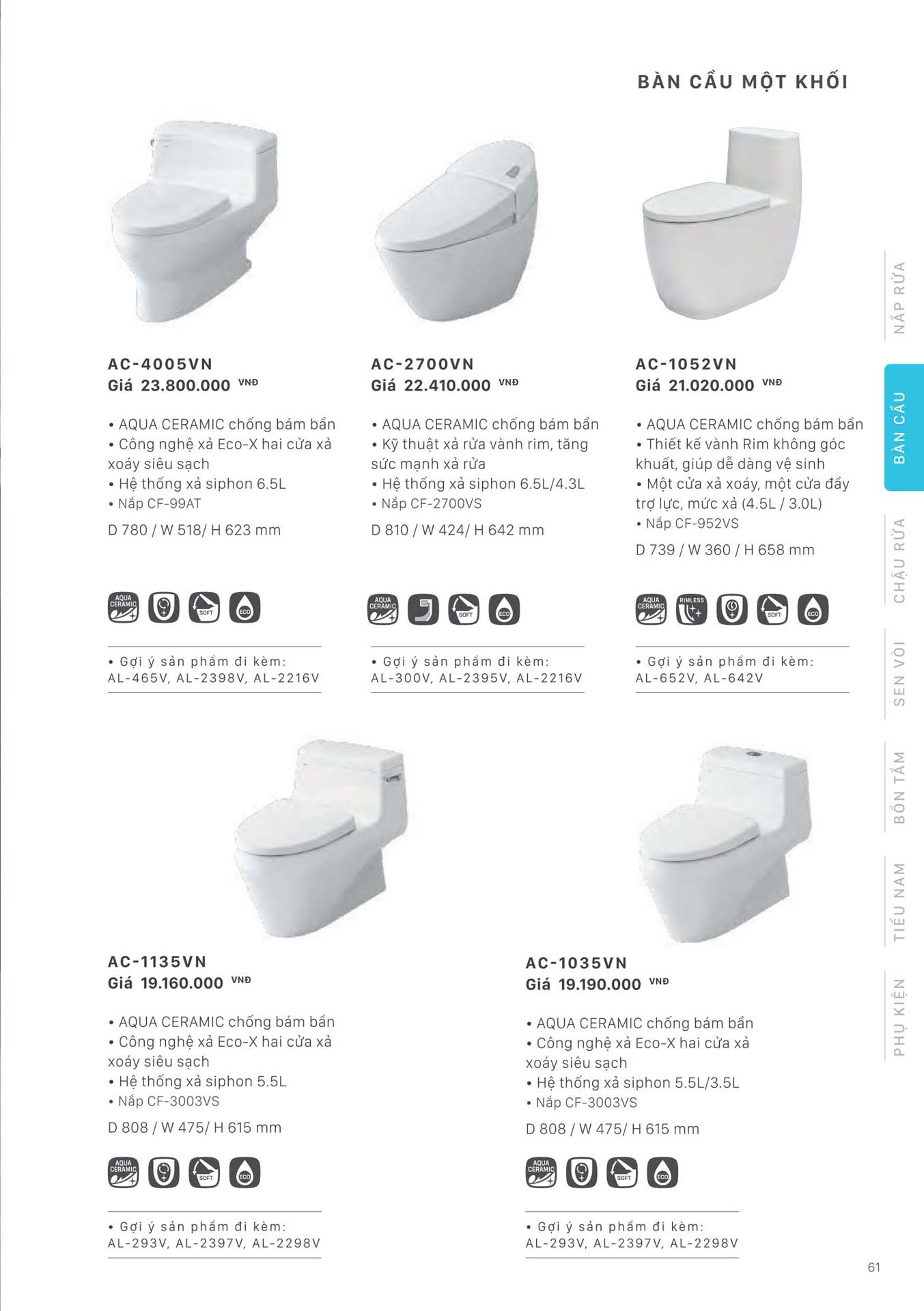 Phần 6: Catalogue Bồn cầu 1 khối INAX