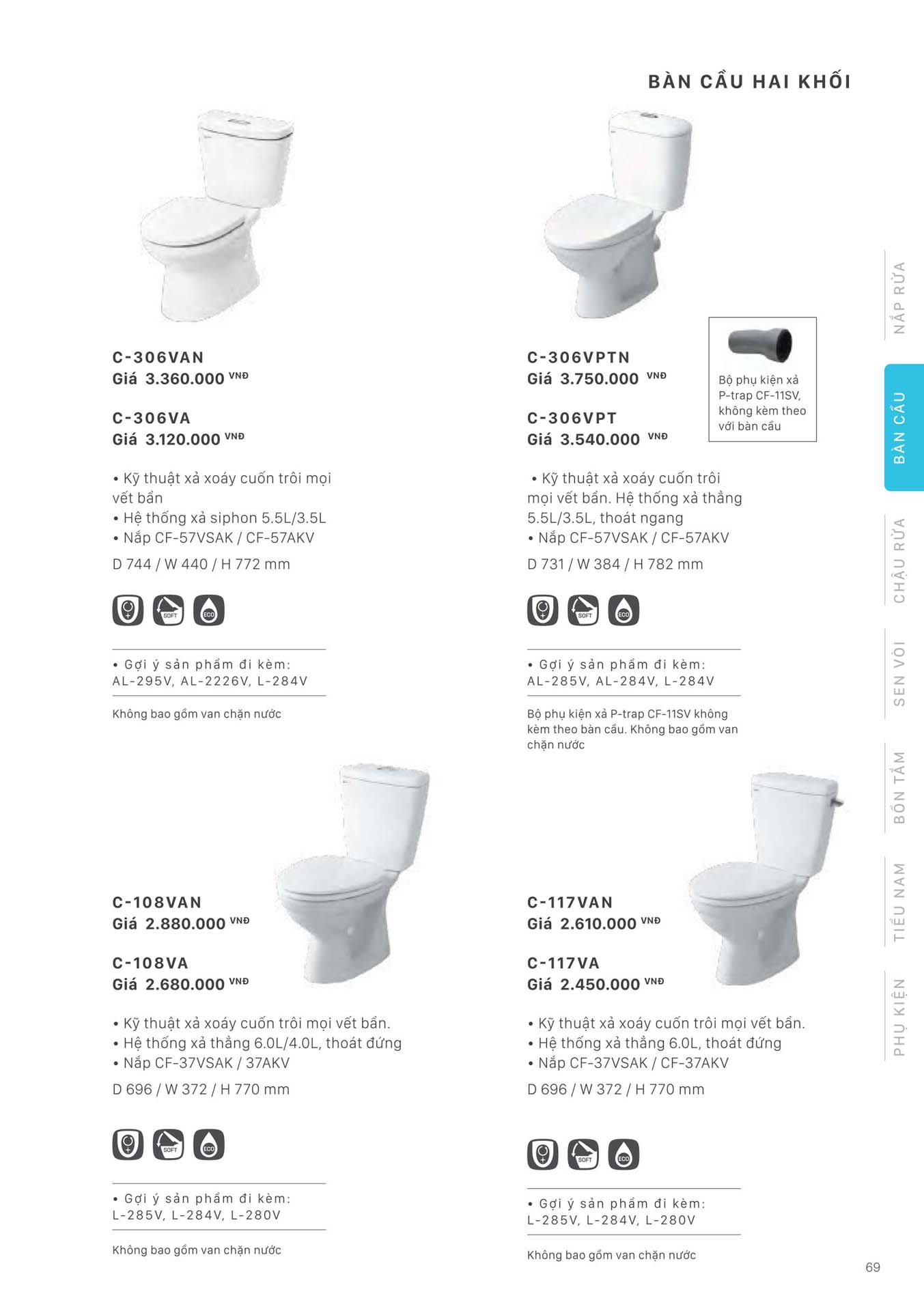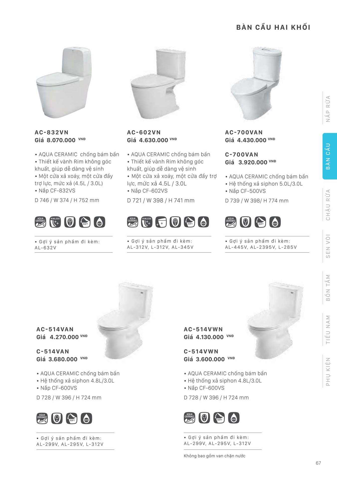 Xem thêm: Bảng giá bồn cầu 2 khối INAX