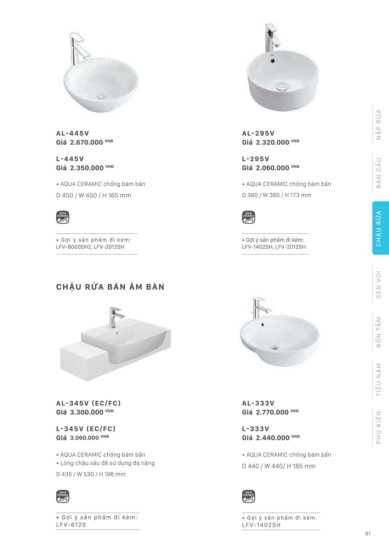 Xem thêm: Bảng giá chậu lavabo INAX