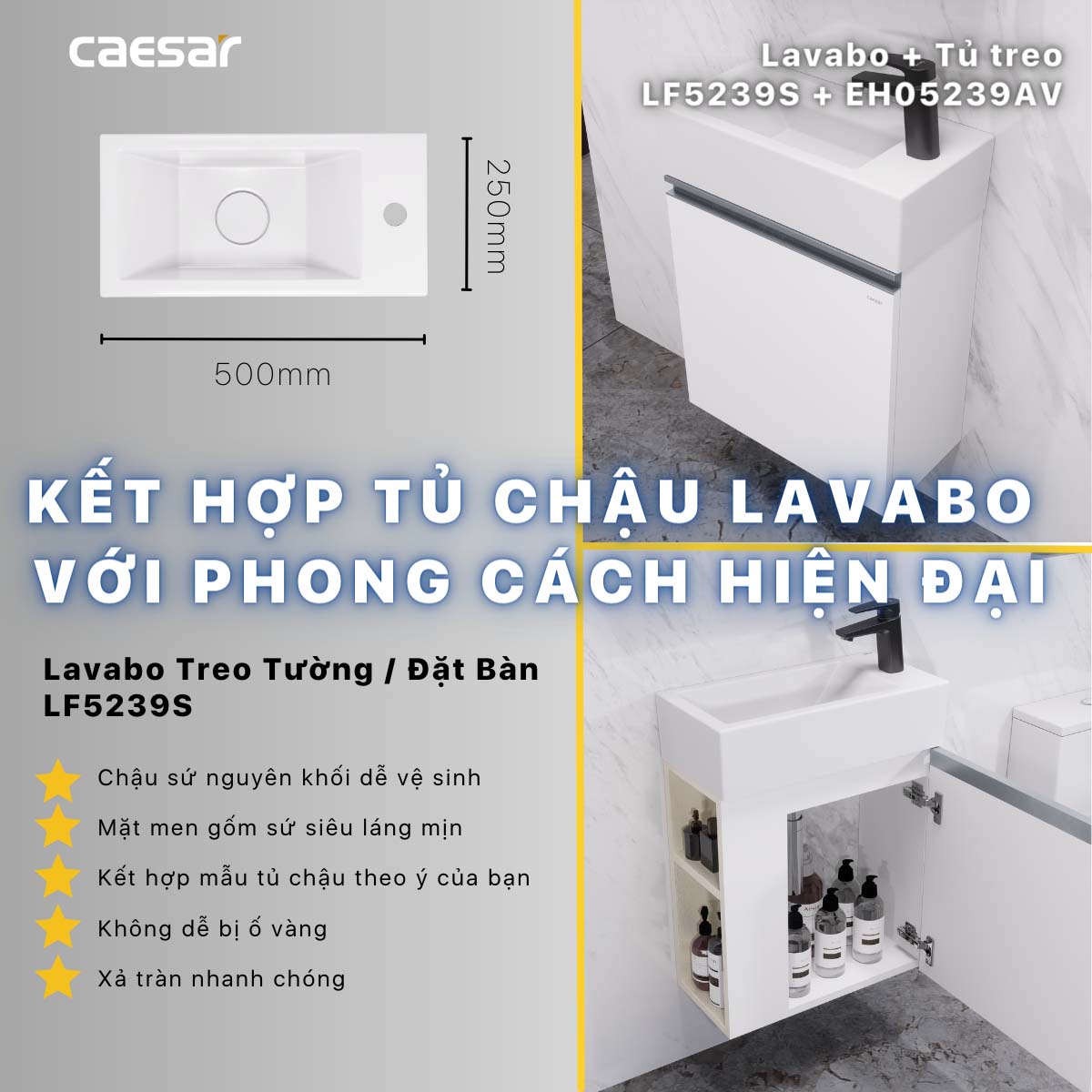 Thông số kĩ thuật và tính năng chậu lavabo CAESAR LF5239S đặt bàn