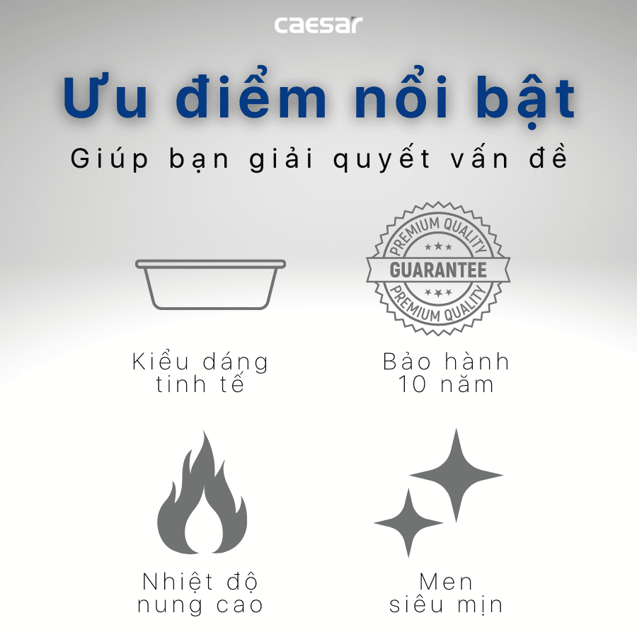 - Bảo hành: 10 năm men sứ, 2 năm đối với phụ kiện