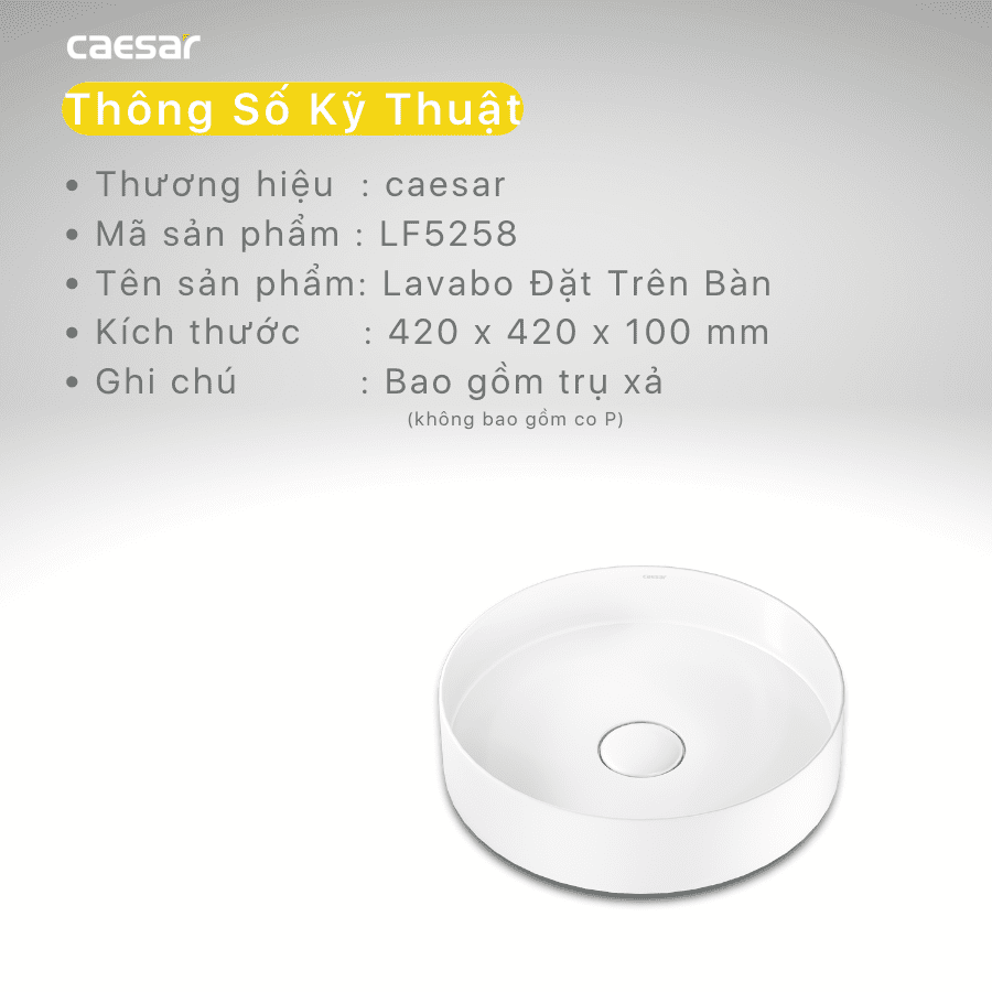 Thông số kĩ thuật Chậu rửa mặt lavabo CAESAR LF5258 đặt bàn