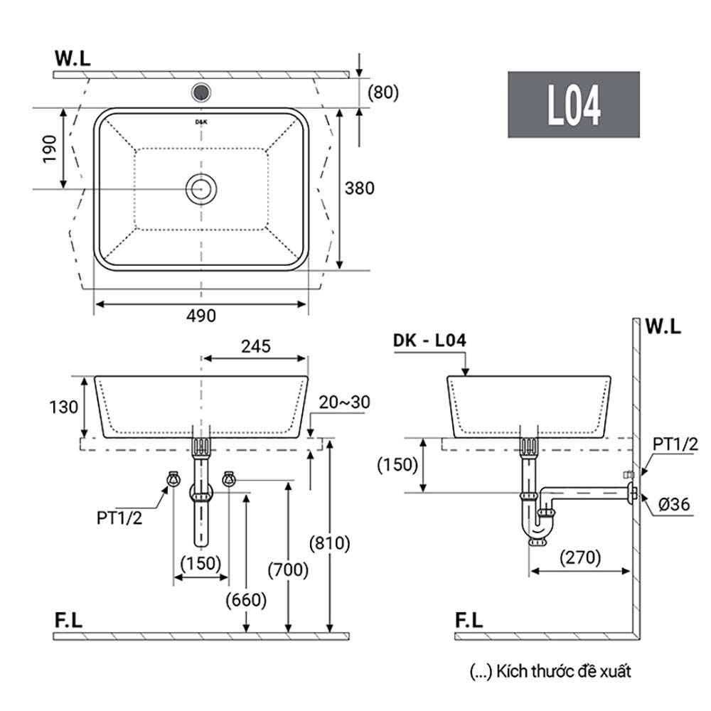 Thông số kỹ thuật chậu lavabo D&K DK-L04 đặt bàn