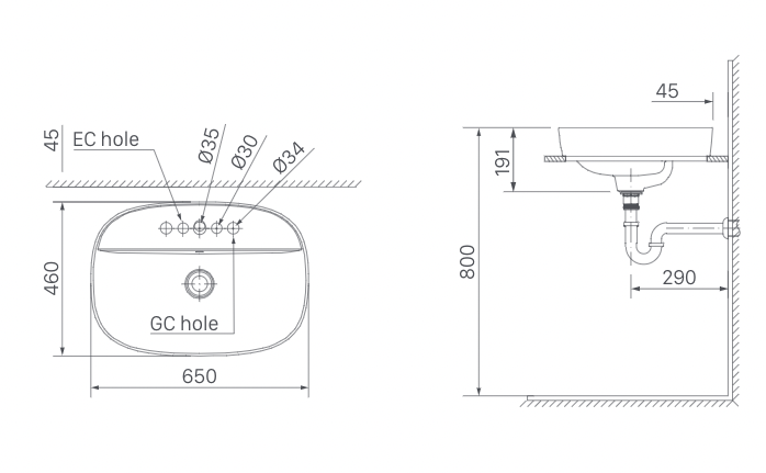- Không bao gồm: vòi, giá đỡ, siphon/bộ xả