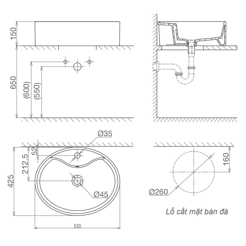 Bản-vẽ-kĩ-thuật-chậu-lavabo-VIGLACERA-CD 19-đặt-bàn