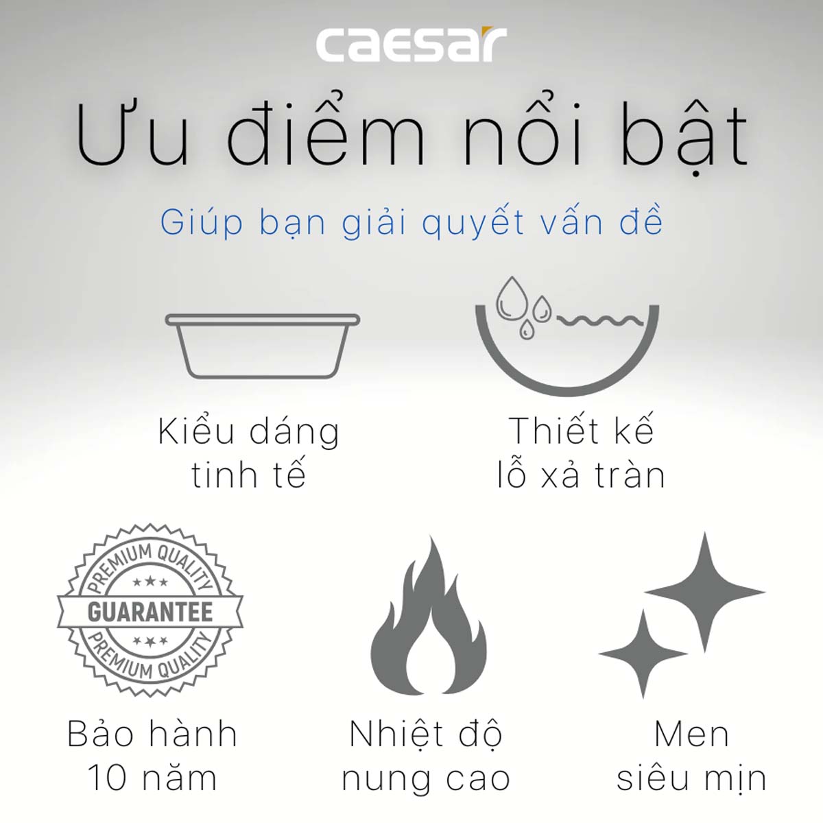 - Bảo hành: 10 năm men sứ, 2 năm đối với phụ kiện