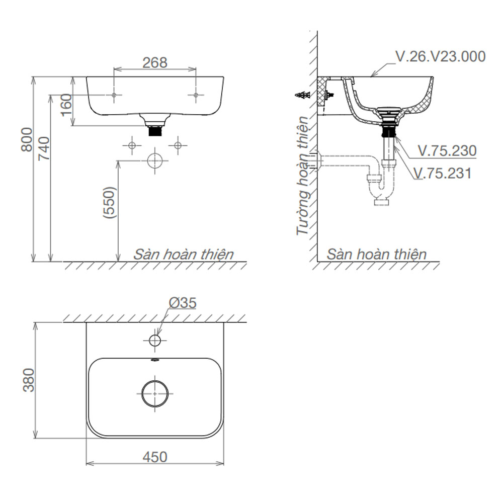 | Kiểu dáng | Lavabo treo tường |