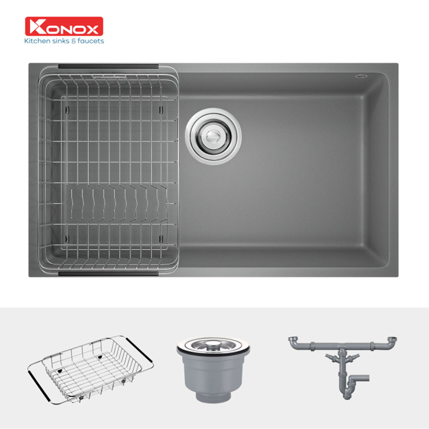 Chậu rửa bát đá KONOX Naros 760S Grey 1 hố