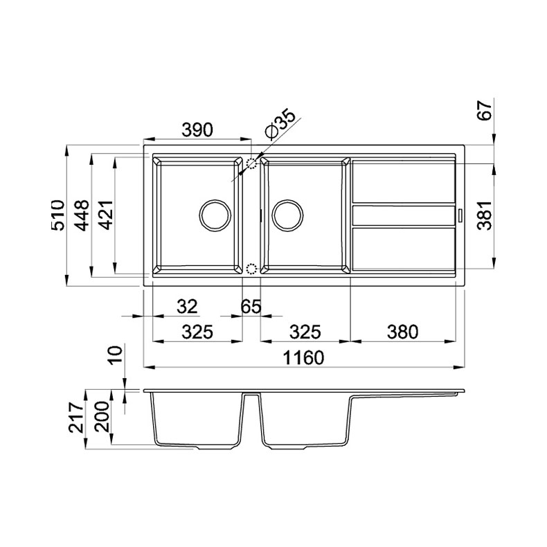 Bản Vẽ Kỹ Thuật Chậu rửa bát đá Malloca NERO G-50040
