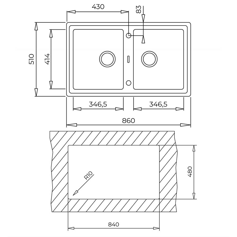 Bản vẽ kỹ thuật Chậu rửa bát đá Teka STONE 90 B-TG 2B GREY