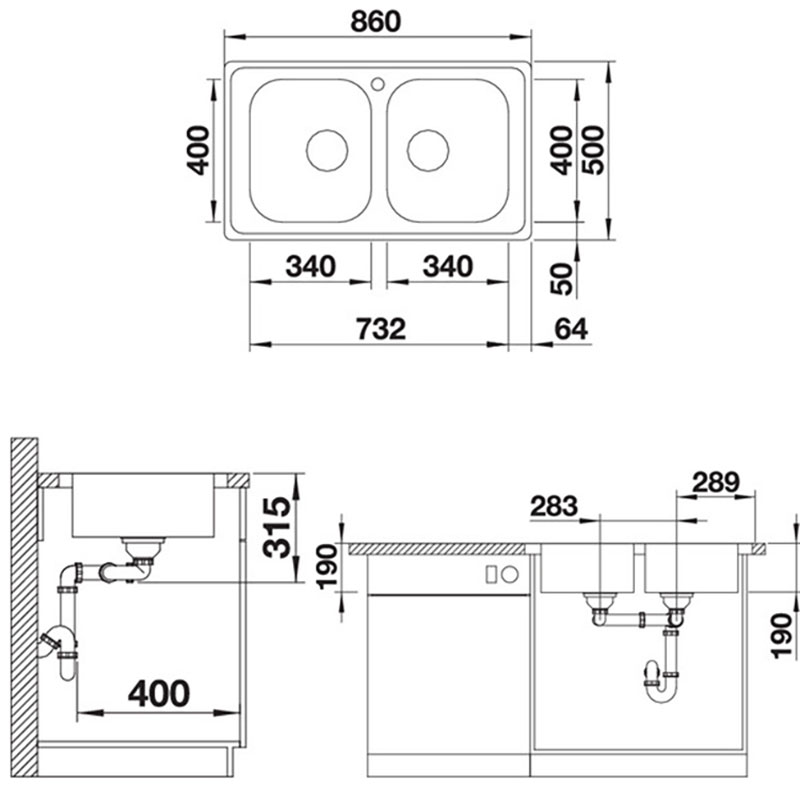 Bản Vẽ Kỹ Thuật Chậu rửa bát inox BLANCO DINAS 8 570.27.219