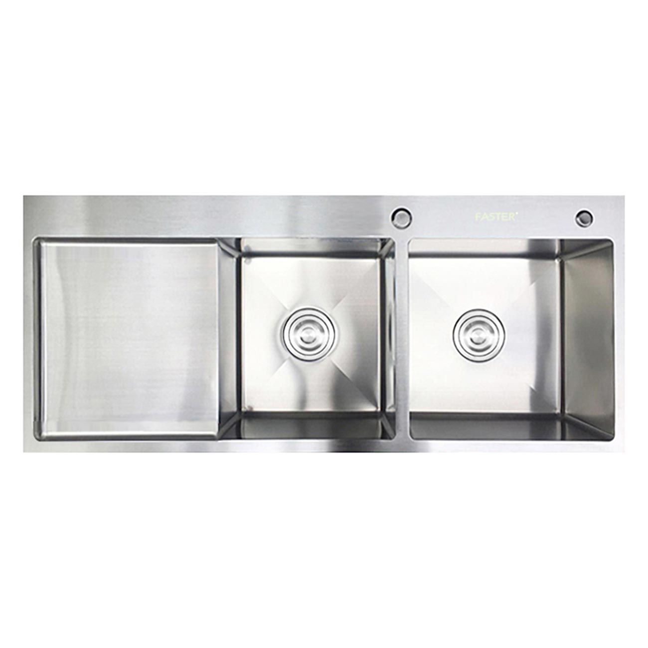 Chậu rửa bát inox FASTER FS 11046HMS dương bàn 2 hố 1 bàn