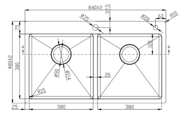 Bản vẽ kỹ thuật Chậu rửa bát inox GENTO GT04-8448C 2 hố