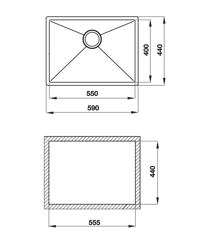 Bản vẽ kích thước Chậu rửa bát Inox Hafele HS19-SSN1S60 567.20.397