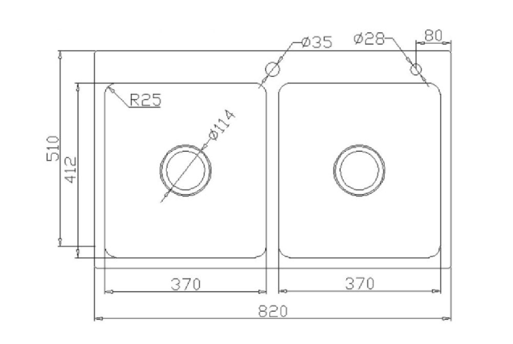 Bản Vẽ Kỹ Thuật Chậu rửa bát inox KONOX KN8251TD DEKOR dương bàn 2 hố
