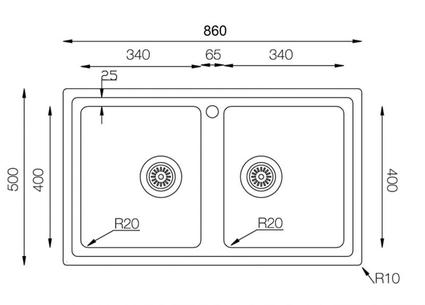 Bản Vẽ Kỹ Thuật Chậu rửa bát inox KONOX Turkey Beta 860