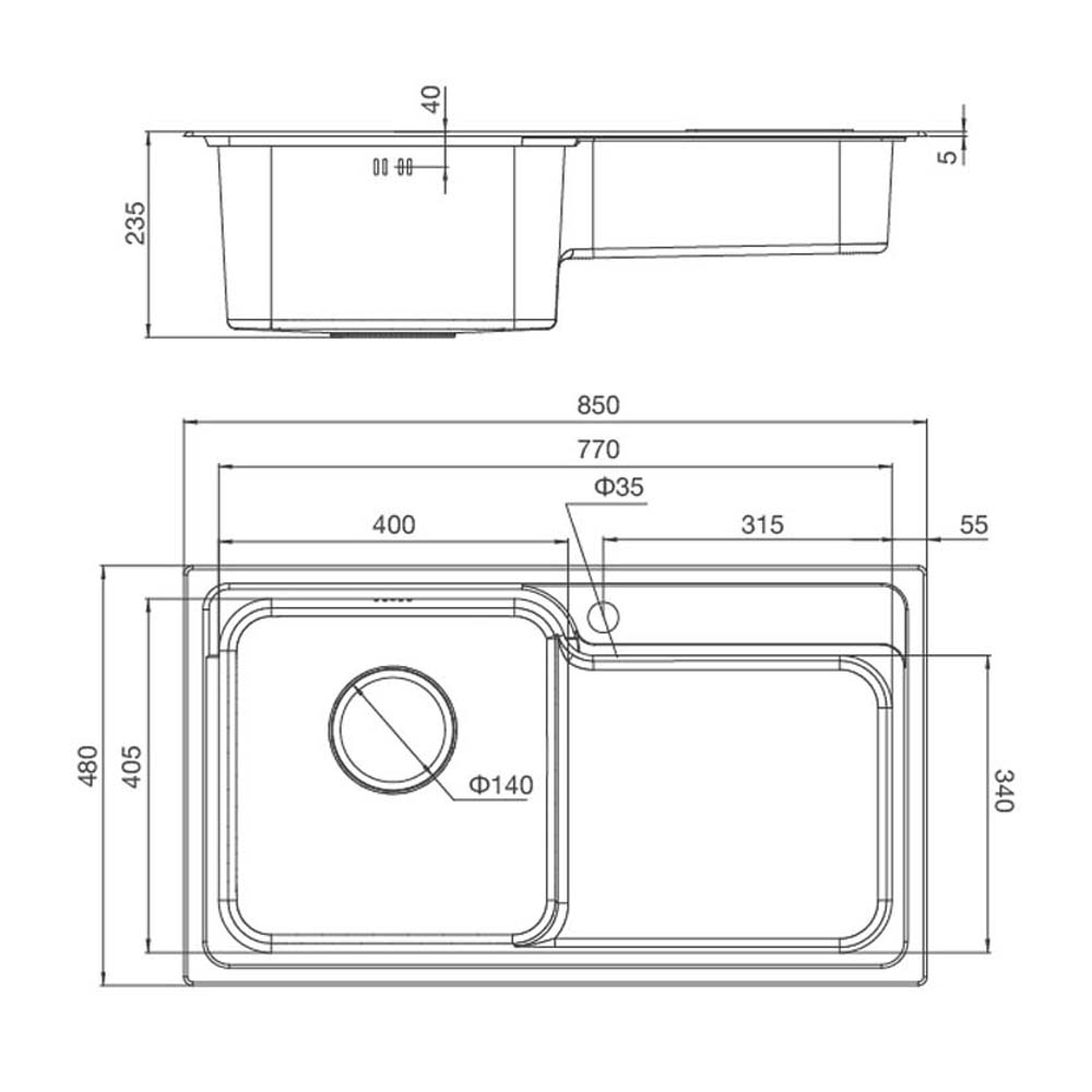 Bản Vẽ Kỹ Thuật Chậu rửa bát inox Malloca MS 1028 N