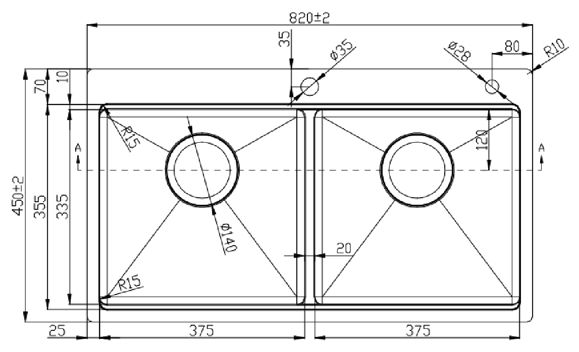 Bản Vẽ Kỹ Thuật Chậu rửa bát inox Roslerer RL04-8245 NEW Lệch dương bàn 2 Hố