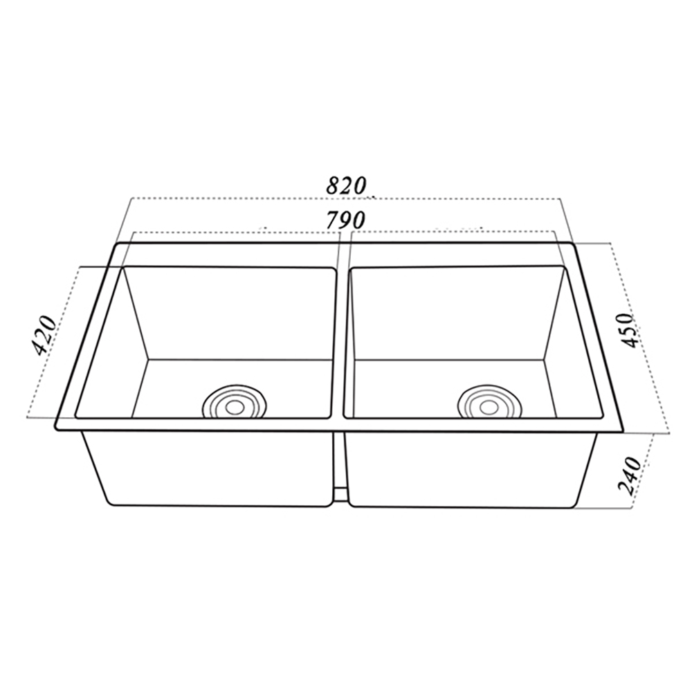 - Kích thước chậu: 820x450x240mm
