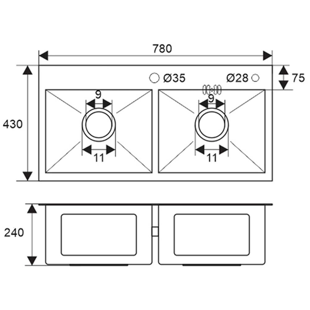 Bản vẽ kỹ thuật Chậu rửa bát inox Sevilla SV-7843N1 dương bàn 2 hố