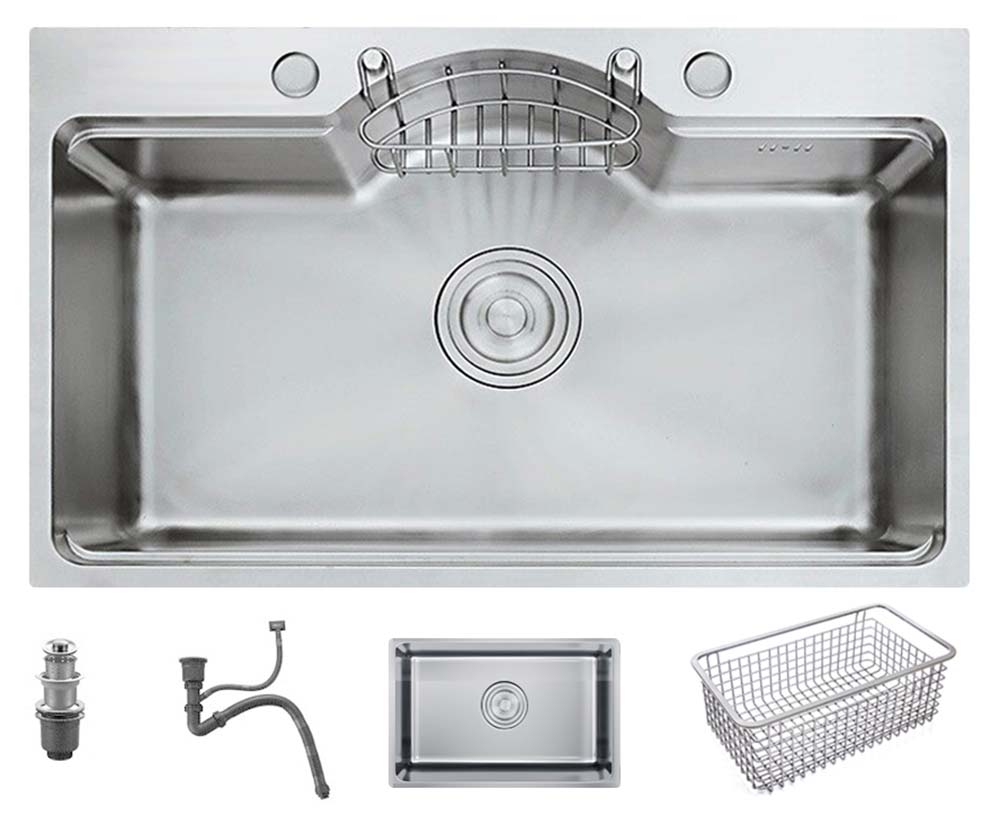 - Bao gồm: thân chậu, xi phông, rổ inox, chậu mini
