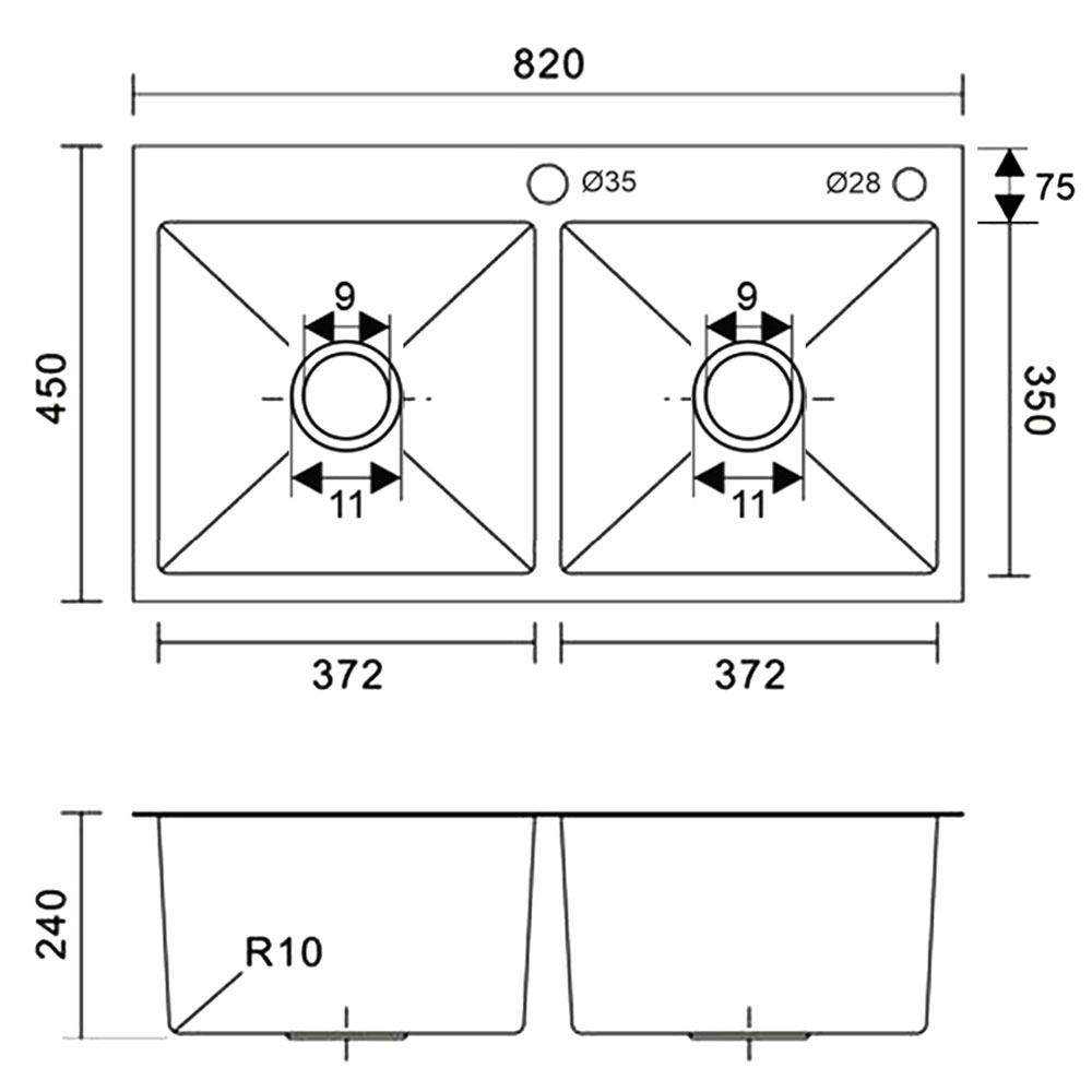 Bản vẽ kỹ thuật Chậu rửa bát inox Sevilla SV-8245C dương bàn 2 hố