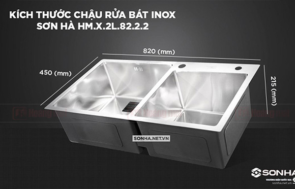 Thông số chi tiết Chậu rửa bát inox Sơn Hà HM.X.2C.82.2.2 2 hố