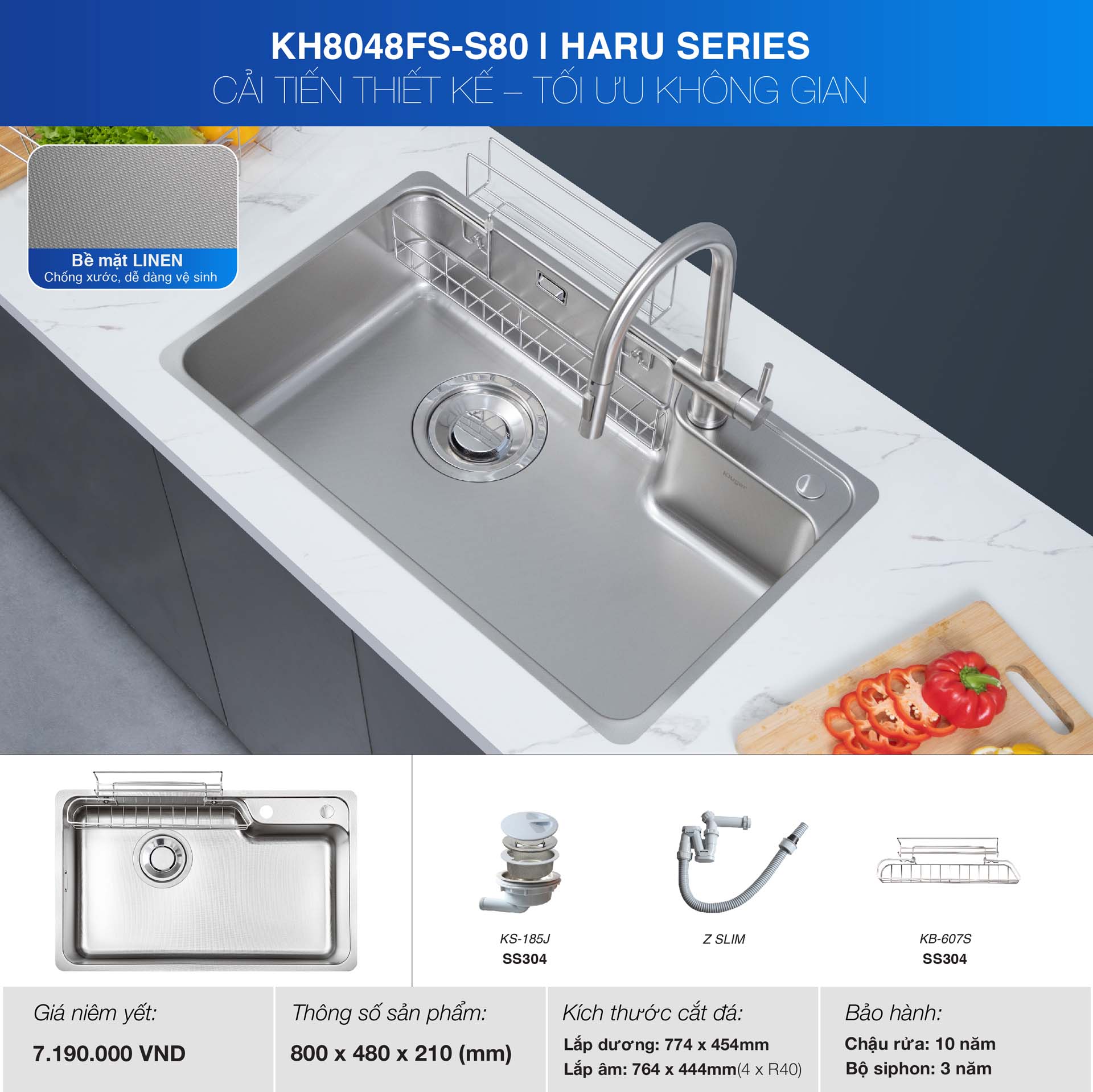 Chậu rửa bát inox KLUGER KH8048FS Plus dòng HARU