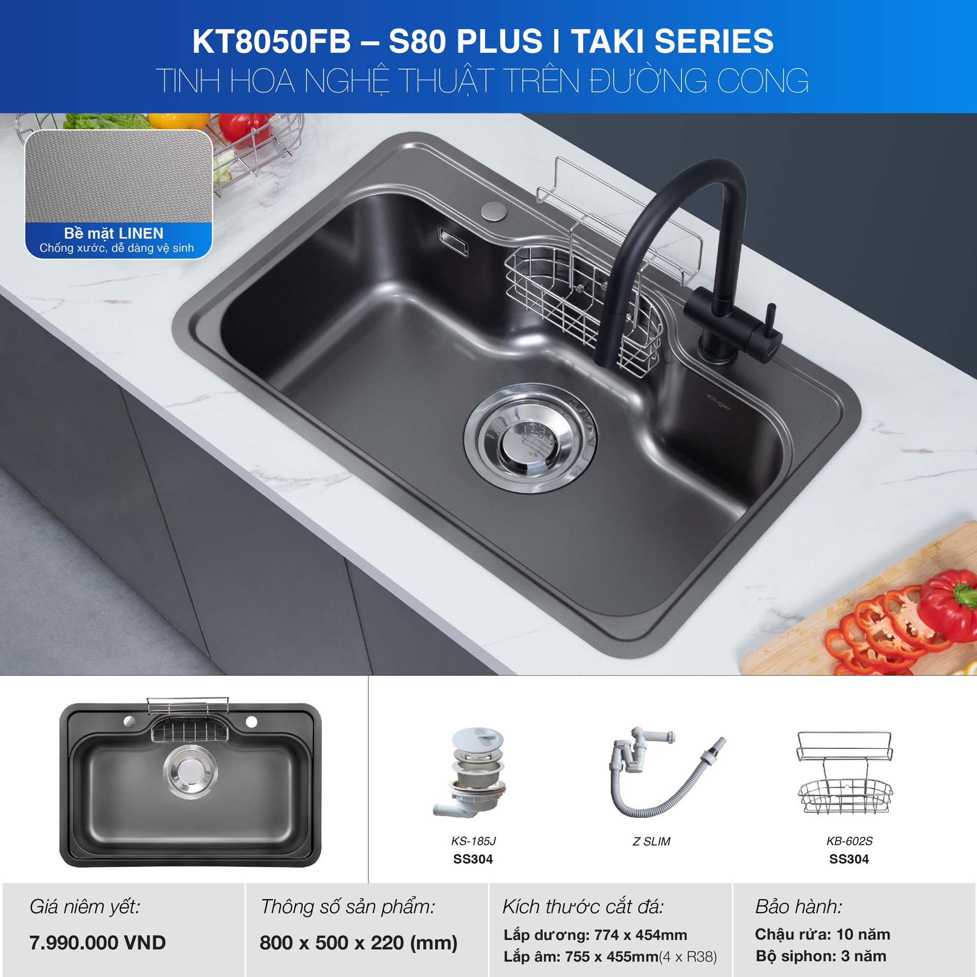 Chậu rửa bát inox KLUGER KT8050FB Plus dòng TAKI