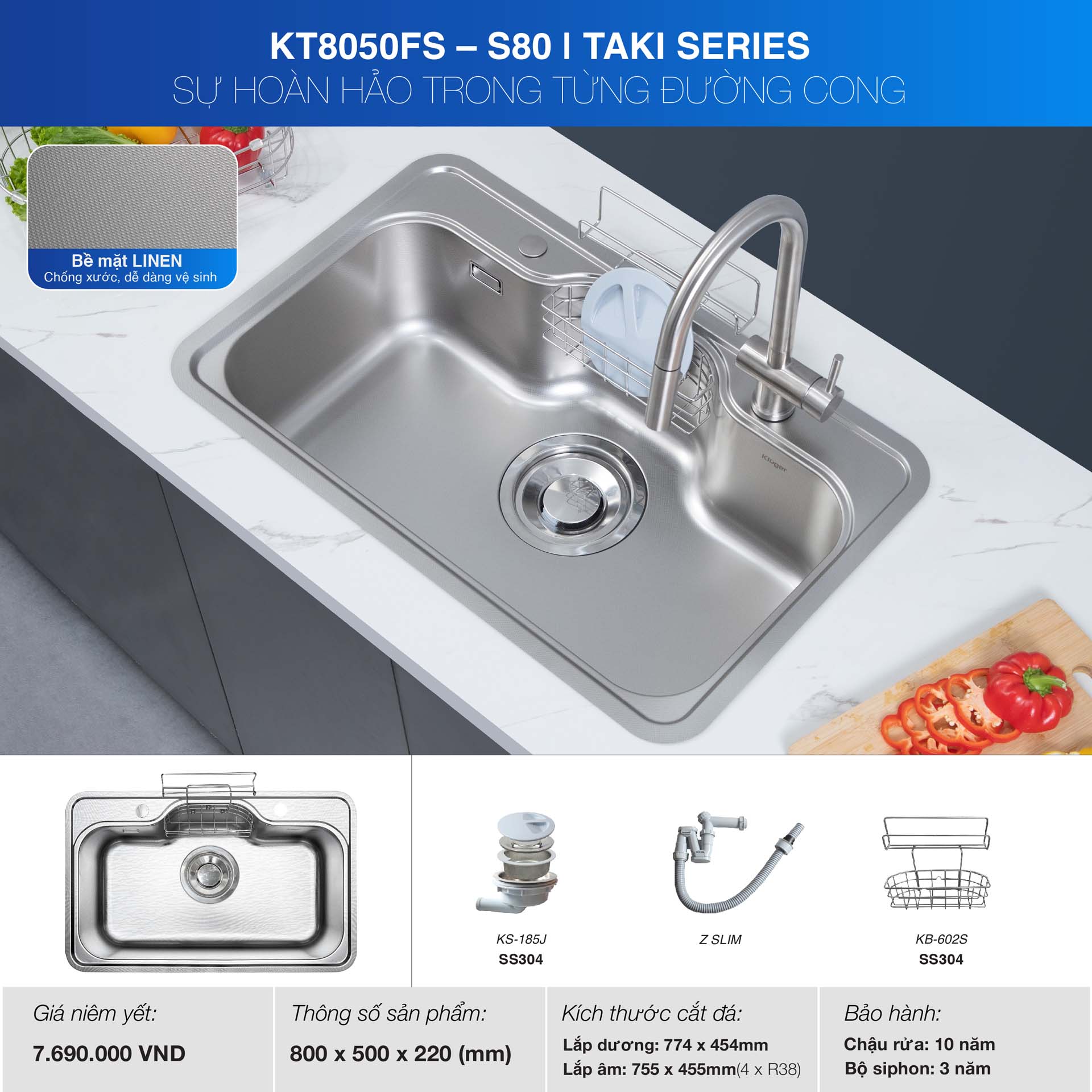 Chậu rửa bát inox KLUGER KT8050FS Plus dòng TAKI