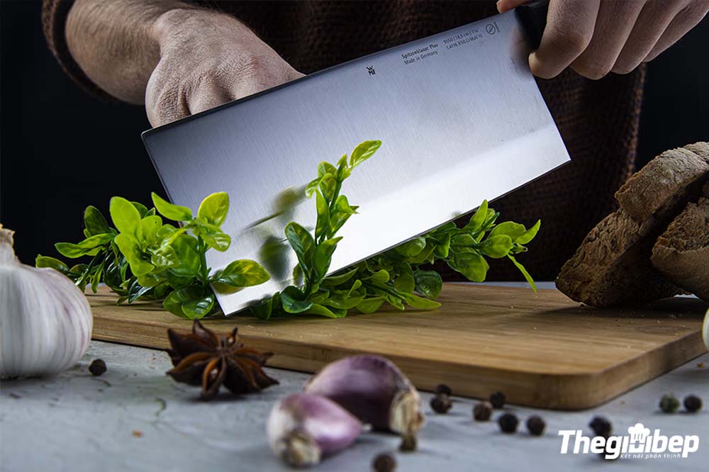 - Bề mặt lưỡi rộng: Đặc điểm khác biệt của Dao chặt WMF SPITZENKLASSE PLUS CHINESE 1895506032 là bề mặt lưỡi cực kỳ rộng. Điều này giúp gia tăng diện tích tiếp xúc khi cắt, giúp đạt được độ chính xác cao hơn trong quá trình xử lý thực phẩm.
