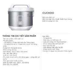 Nồi cơm điện cơ CUCKOO CR-1720 SIVNCV 3.0L