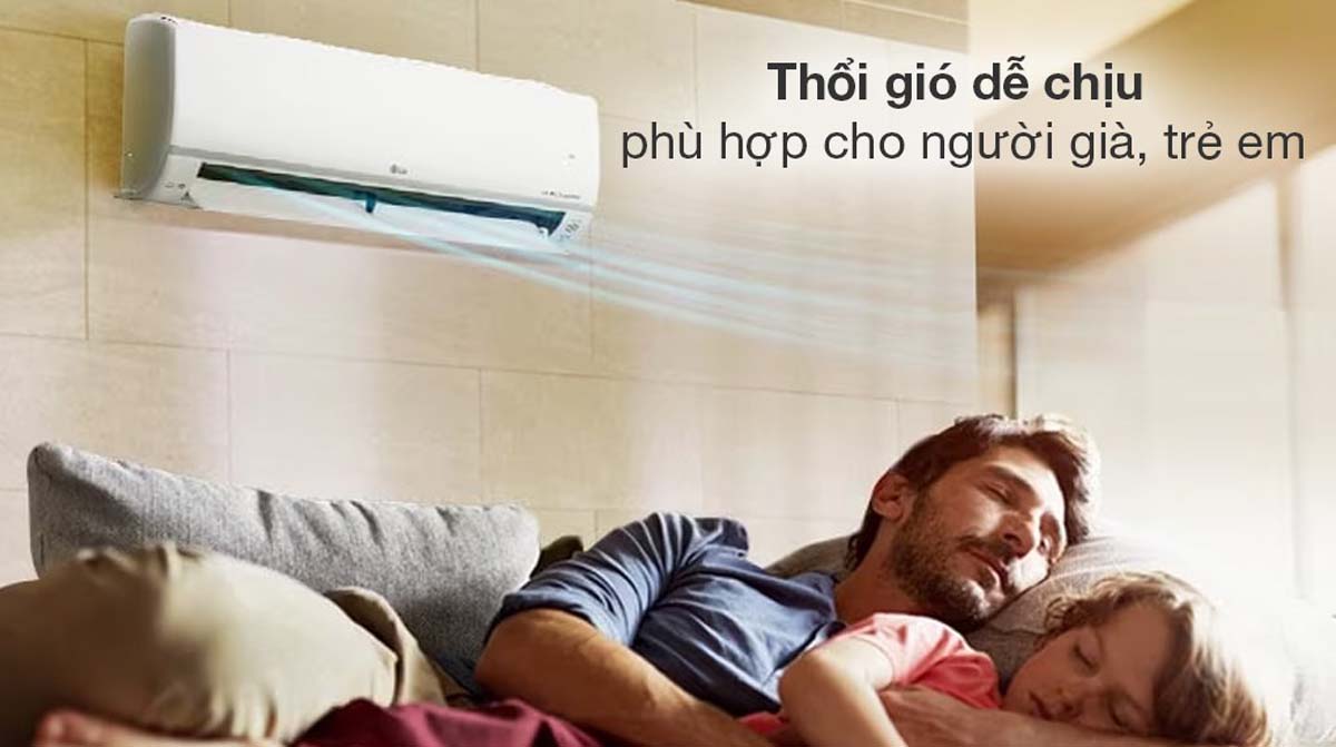 Chế độ thổi gió dễ chịu của điều hòa LG V13APIB được thiết kế để hướng luồng gió lên trần nhà, tránh thổi trực tiếp vào người dùng. Điều này giúp ngăn ngừa cảm lạnh và các vấn đề về sức khỏe do tiếp xúc trực tiếp với luồng khí lạnh. Tính năng này đặc biệt hữu ích cho trẻ nhỏ, người già và những người có sức khỏe nhạy cảm, mang lại cảm giác thoải mái và an toàn khi sử dụng điều hòa.