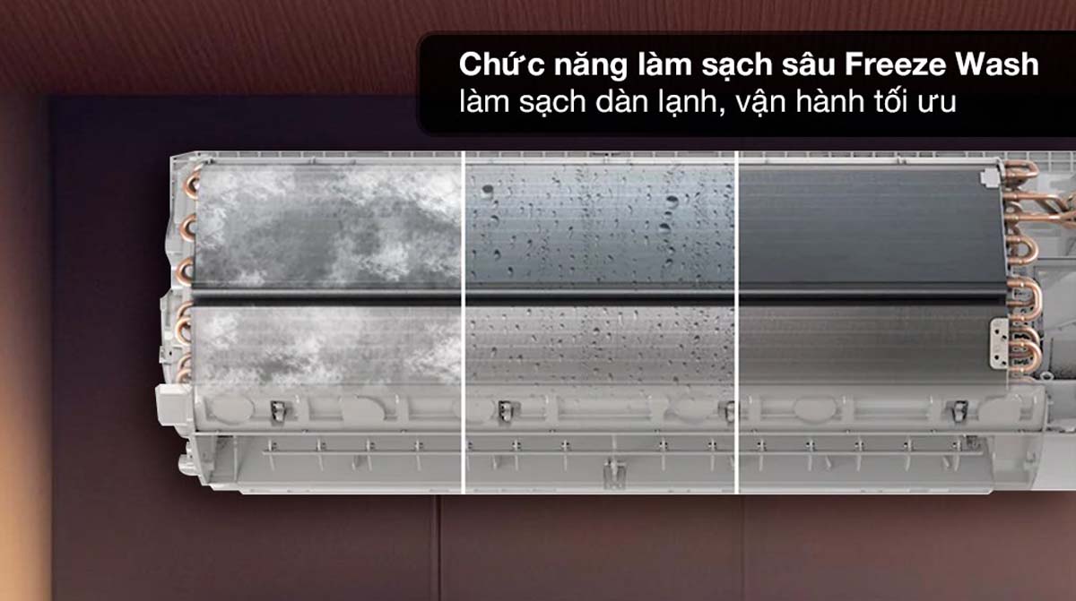 Chức năng làm sạch sâu Freeze Wash làm đông và rã đông dàn trao đổi nhiệt của dàn lạnh nhanh chóng, giúp cuốn trôi mọi bụi bẩn tích tụ đồng thời ngăn không cho vi khuẩn, nấm mốc sinh sôi phát triển. Tính năng này giúp duy trì hiệu suất làm lạnh tối ưu và kéo dài tuổi thọ thiết bị.Tinh nang dieu hoa Samsung 8