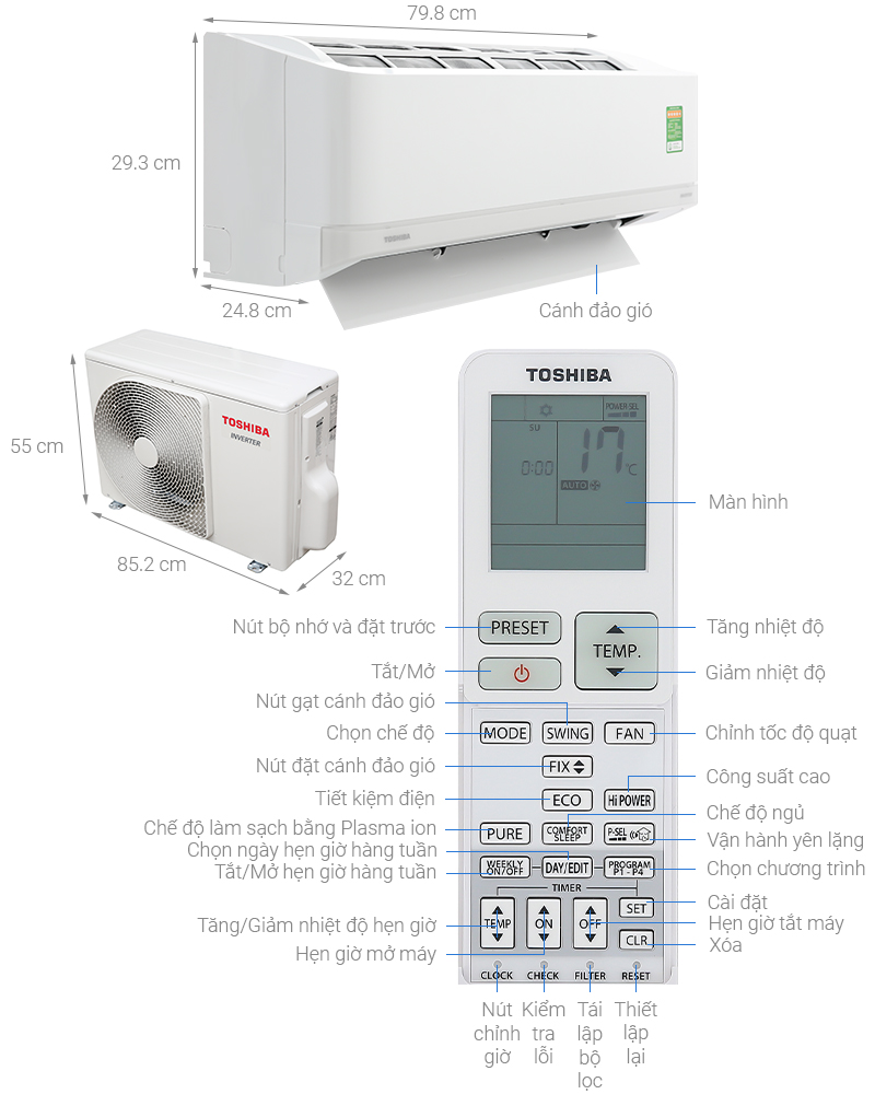 Tính năng Điều Hòa Toshiba RAS-10J2KVG-V RAS-10J2AVG-V 9000btu 2 Chiều Inverter